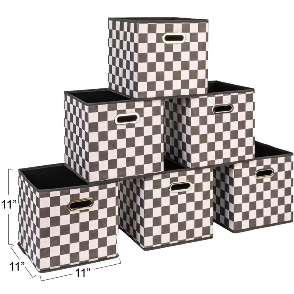 Household Essentials Fabric Storage Bins 6 Piece Set, Checkerboard White And Black