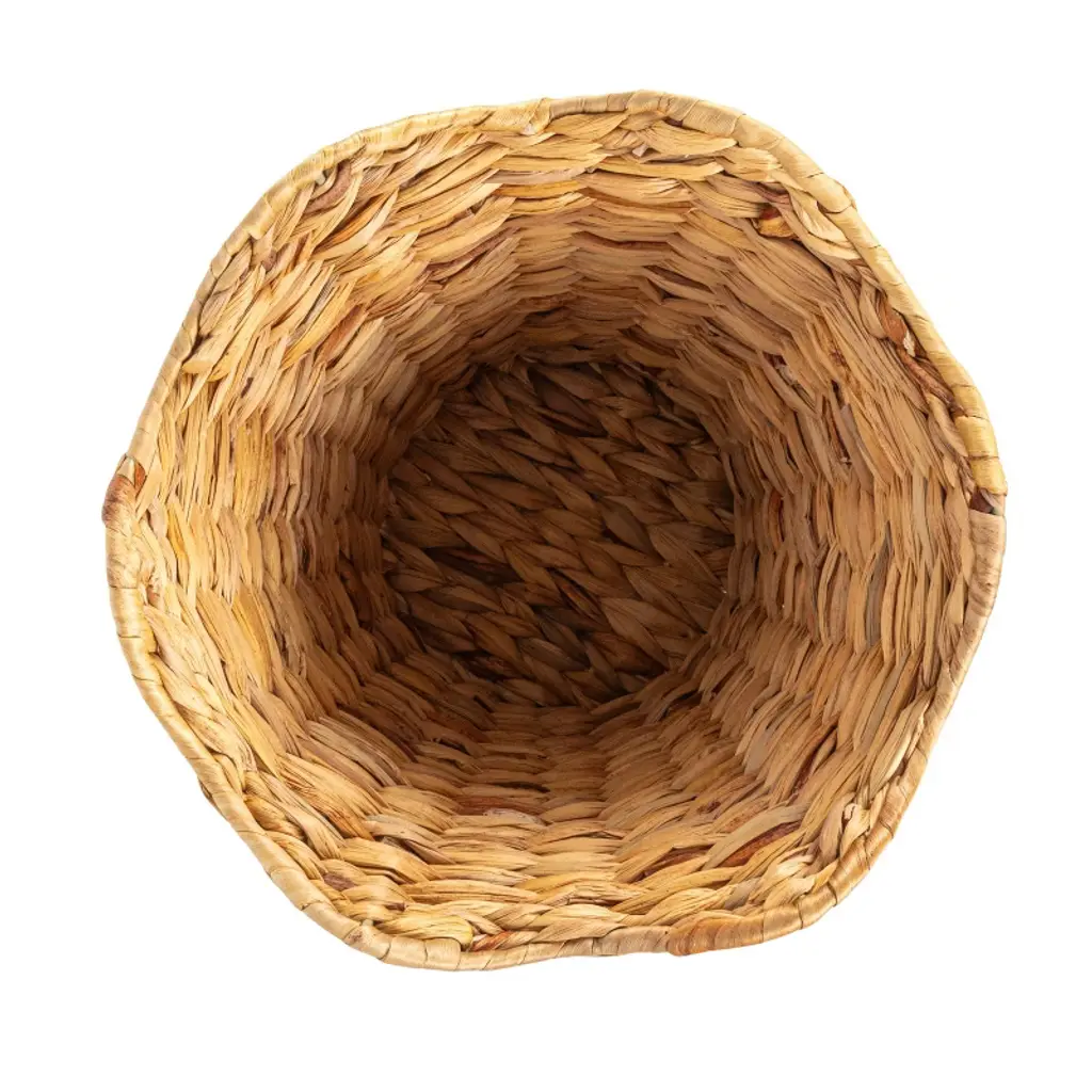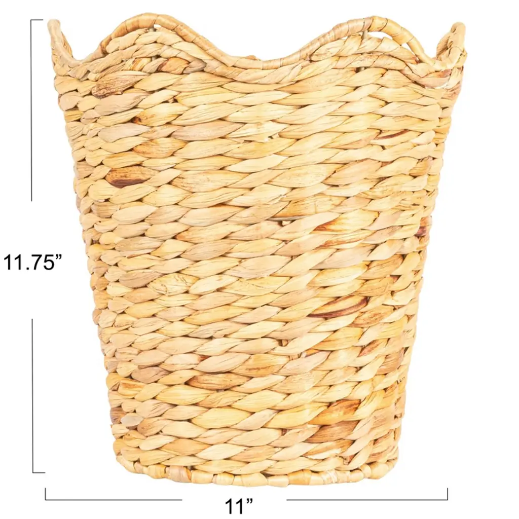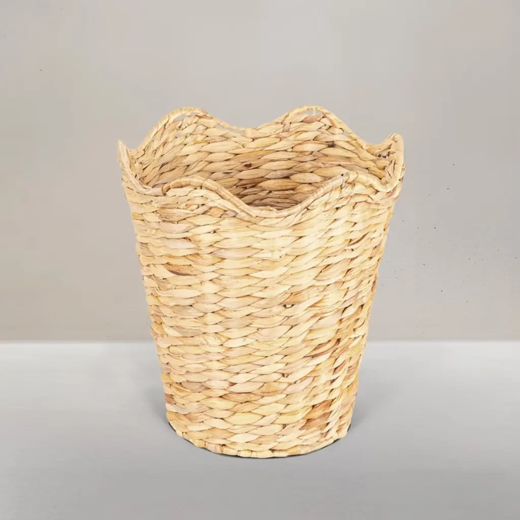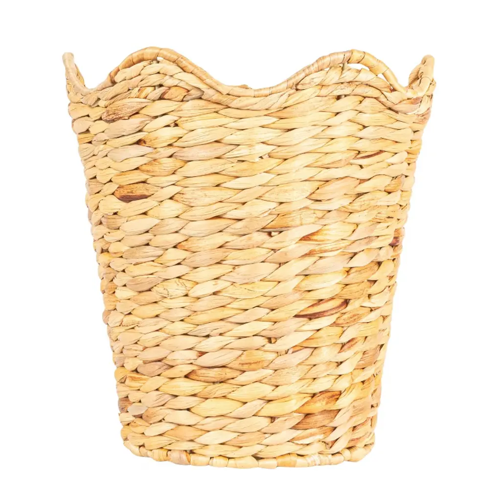Add an sustainable touch to your home with this Woven Water Hyacinth Wastebin, designed with a delicate scalloped edge. Handcrafted from sustainably sourced water hyacinth, this wastebin offers a blend of functionality and natural beauty. The intricate weave pattern and the soft scalloped edge bring a decorative flair, while the water hyacinth material lends an earthy, organic feel. Perfect for bedrooms, bathrooms, or home offices, this wastebin is a stylish and sustainable addition to your decor.