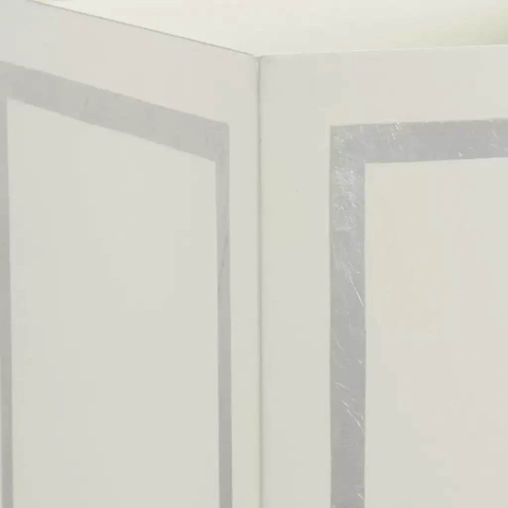 Cream Metal Wastebasket With Metallic Silver Trim.
