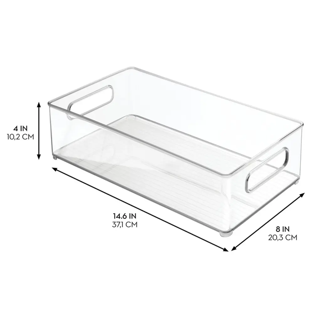 Keep everything tidy and simplify your daily routine with the iDesign Fridge Bin. The spacious, open-top design grants immediate reach-in access to pantry staples, baking supplies, or anything else that needs to be collected in one spot. Its transparent construction offers unobstructed views for instant visibility, and two comfortable carry handles facilitate easy transport. Its slim dimensions fit neatly inside standard or counter-depth refrigerators, offering a practical solution to transform your kitchen space.