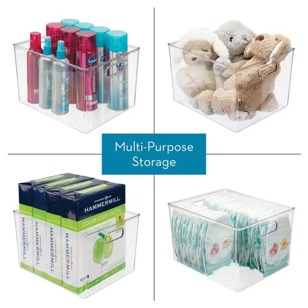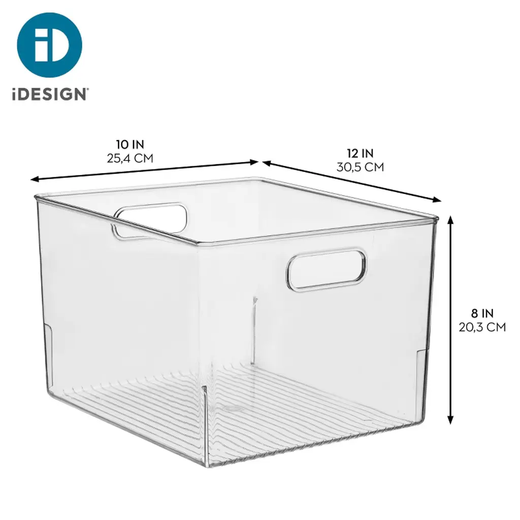 Keep everything tidy and simplify your daily routine with the iDesign Plastic Storage Bins. The spacious, open-top design grants immediate reach-in access to everyday items, keeping your belongings easily accessible at all times. Its transparent construction offers unobstructed views for instant visibility, and two comfortable carry handles facilitate easy transport to make organizing a breeze.