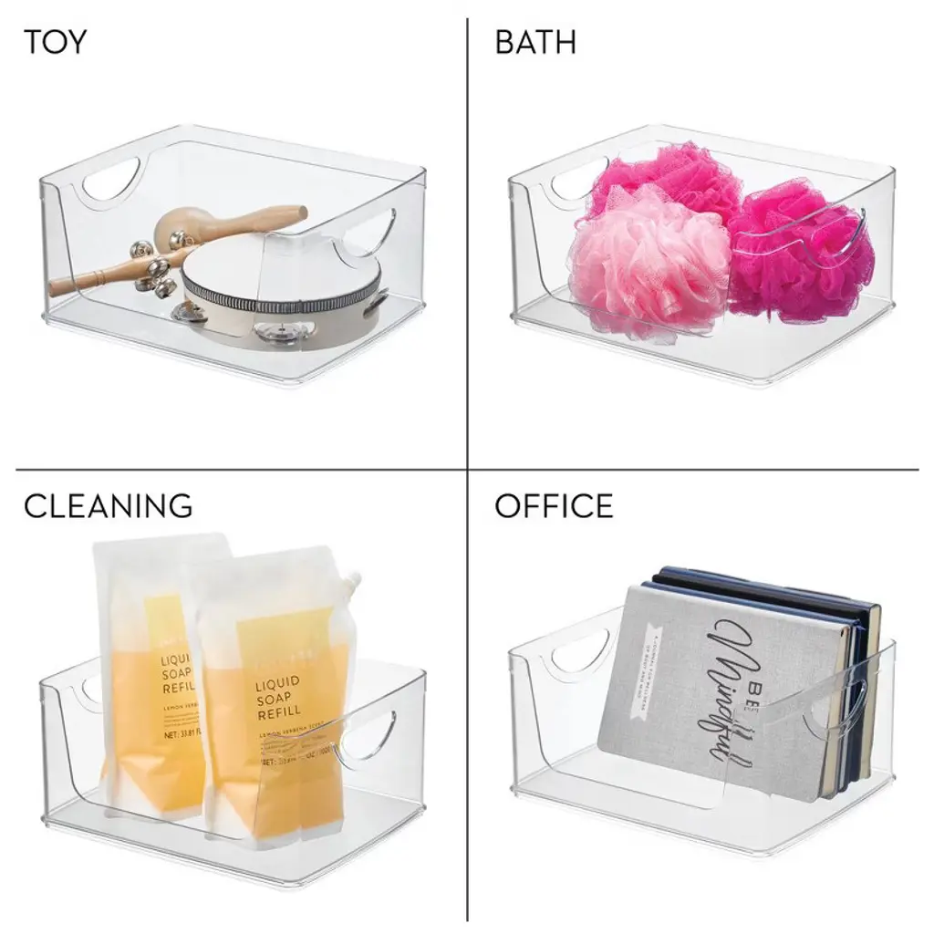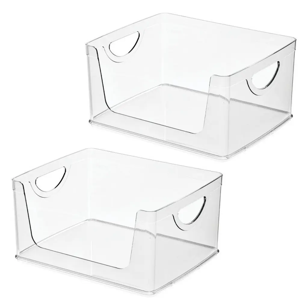 Idesign Stackable Open-front Bin With Handles, Set Of 2, Clear, Made In Usa
