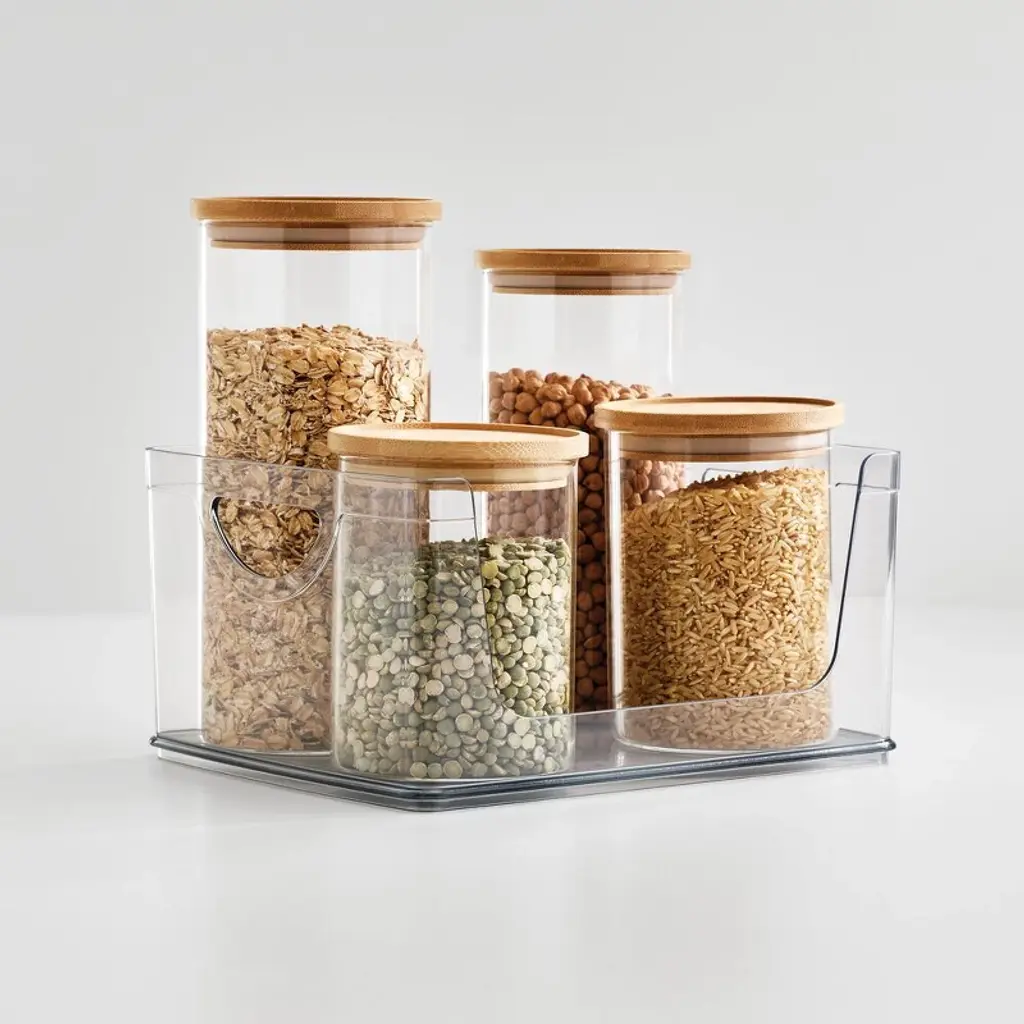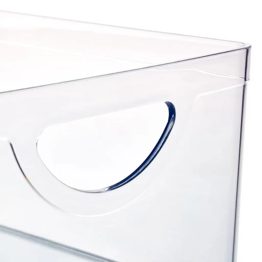 Reduce shelf clutter with the Stackable Open-Front Pantry Bin. This open-front bin stacks vertically to conserve shelf space, and the front cutout offers easy accessibility. The crystal-clear construction blends modern aesthetics with practical functionality, and integrated handles facilitate easy transport, creating a flexible solution anywhere throughout the home.