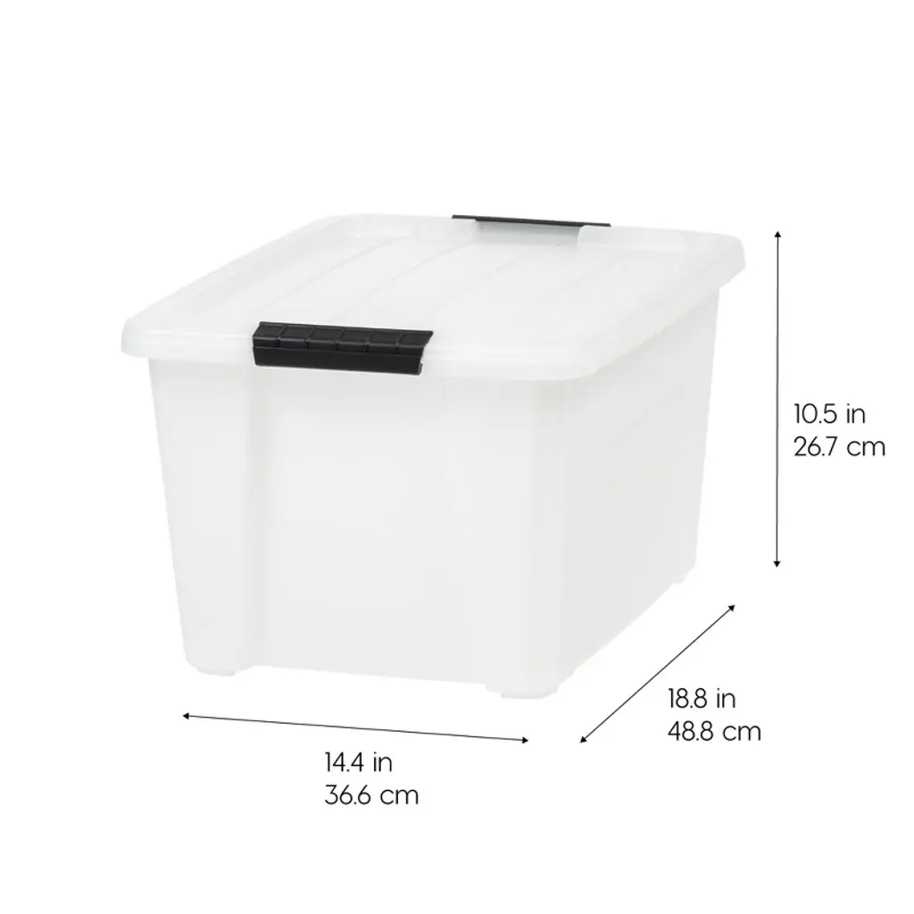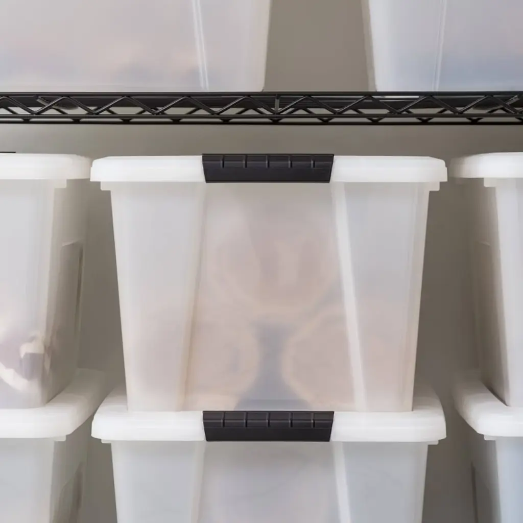 Declutter and organize with ease using these reliable storage containers designed for everyday use in any space. These plastic storage bins with lids are a practical and efficient solution for organizing your home, garage, office, or classroom. Whether you need to store clothing, tools, crafts, pantry goods, or holiday decorations, these storage totes offer the strength, capacity, and convenience you need. Each storage bin features a secure latching lid to keep contents protected from dust, dirt, and moisture, making them perfect for both short-term and long-term use. The storage bins with lids are ideal for storing seasonal items, kids’ toys, school supplies, or office materials. These totes for storage are designed to keep your space neat and your belongings easily accessible. Built-in handles make every storage tote easy to carry and move, while the stackable design allows you to save floor space and maximize vertical storage. These totes stack securely to help organize closets, shelves, pantries, basements, and garages. The sturdy construction of these storage totes with lids ensures long-lasting performance, even with frequent use. Perfect for any room or setting, these storage bins are a versatile choice for dorm rooms, laundry rooms, classrooms, or during a move. Whether you're creating a more organized home or simply need a dependable tote for packing away items, these plastic storage bins with lids are the ideal choice. Take control of clutter and simplify your life with these all-purpose storage containers. From everyday essentials to seasonal storage, these bins provide a dependable and stylish way to stay organized. Designed for durability, ease of use, and space-saving efficiency, these storage totes deliver reliable performance and flexible storage for any lifestyle.