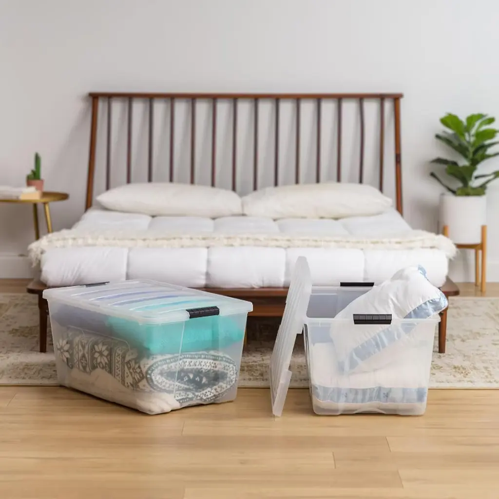 Iris Usa 2 Pack 94 Quart Stackable Plastic Storage Bins With Lids And Latching Buckles For Clothes