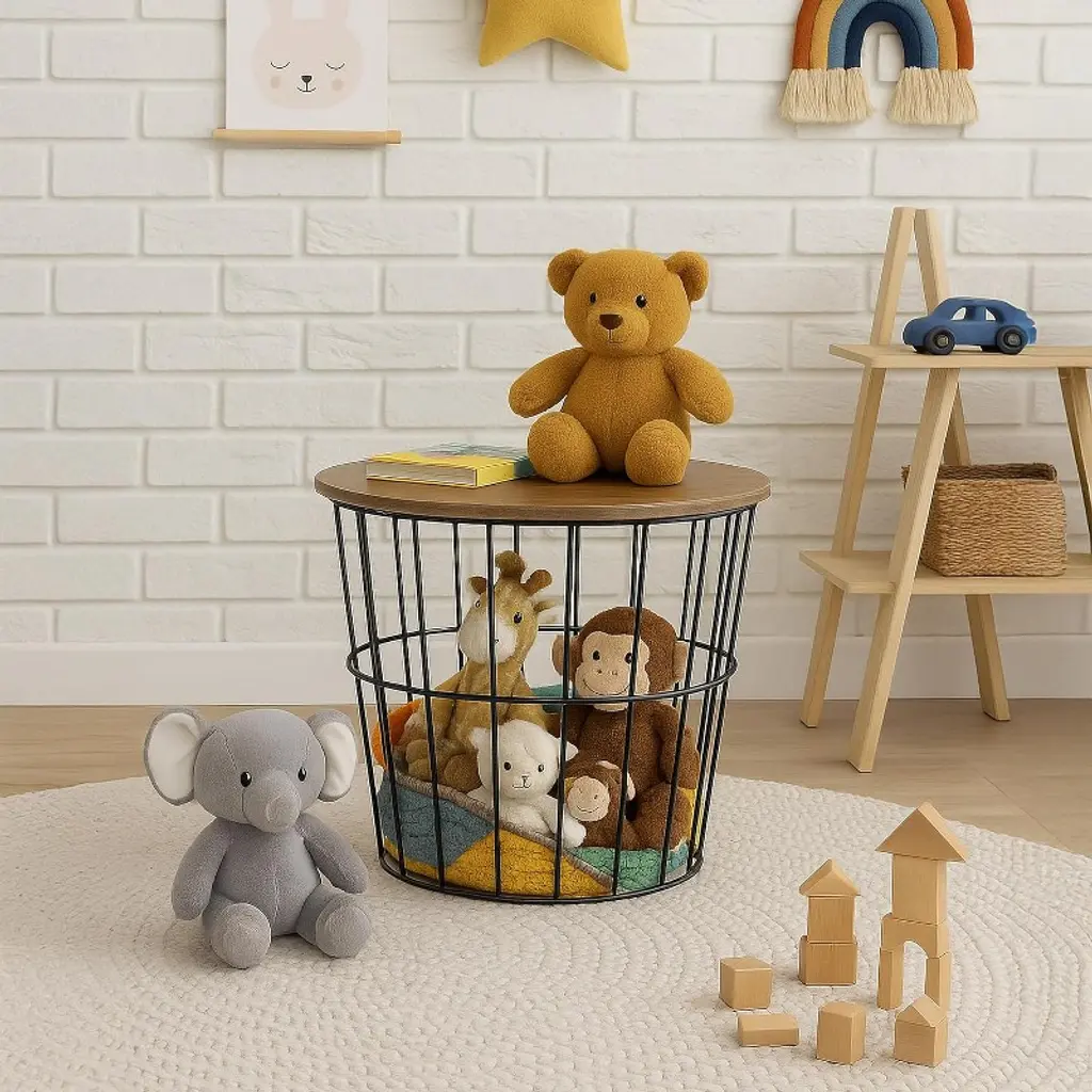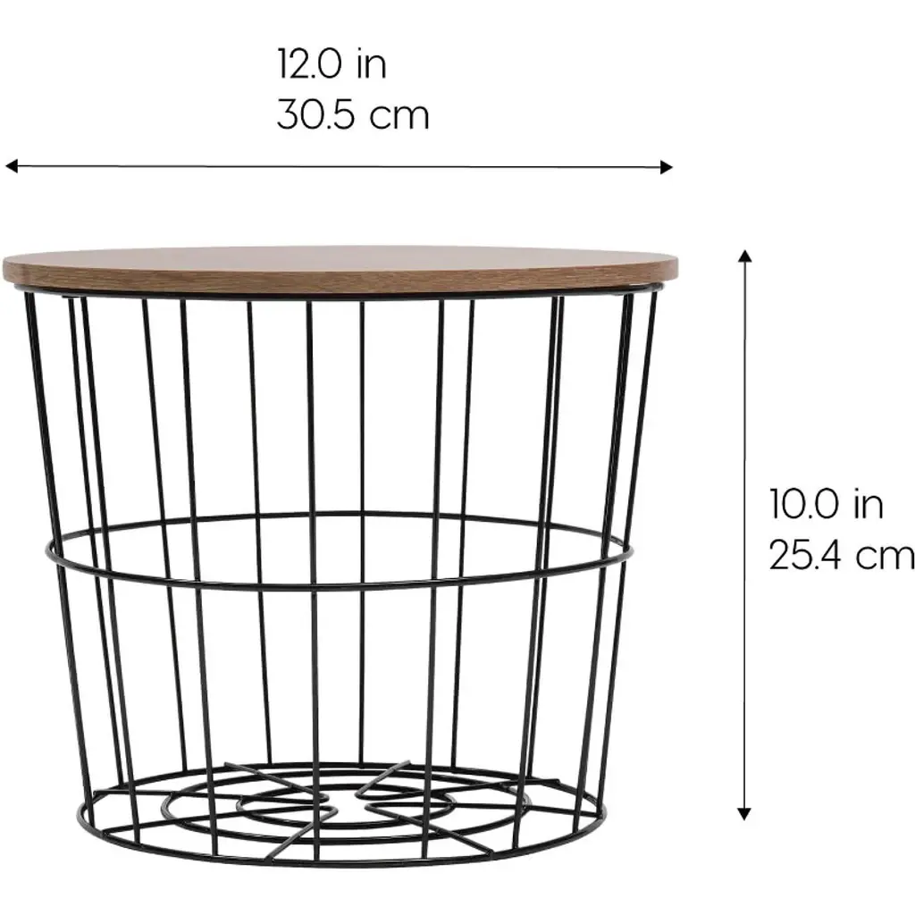Upgrade your home organization with the IRIS USA 2 pc set of Round Wire Basket with Wooden Lid. These stylish farmhouse-style baskets are perfect for storing potatoes, onions, snacks, pet toys, blankets, and toiletries. The durable black wire frame supports up to 39.6 lbs, while the water-resistant wooden lid (melamine and PVC) offers extra surface space and wipes clean easily. Use them in the kitchen, living room, bathroom, or office to keep clutter out of sight. Nestable for compact storage when not in use. Quick, tool-free assembly—just attach the rubber stoppers to secure the lid.