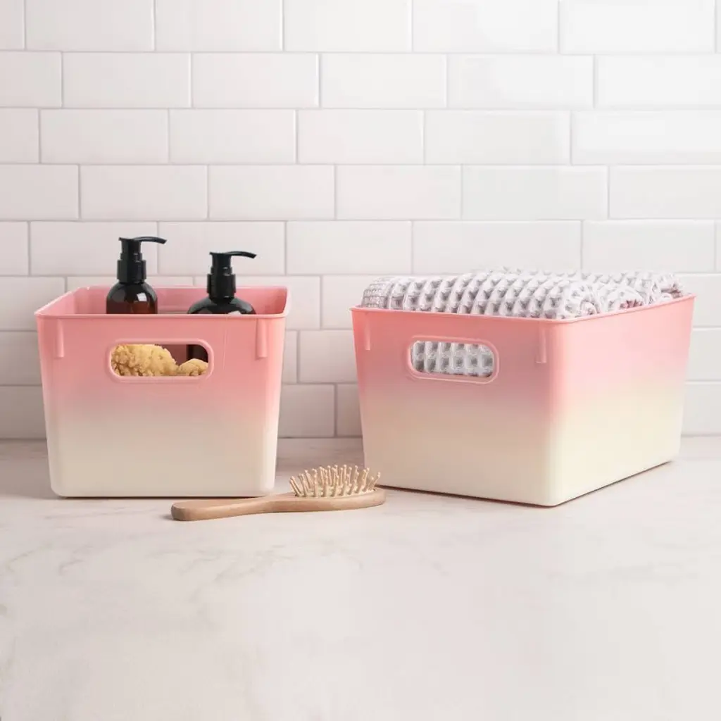 Isaac Jacobs 2Pk 7"x8.11" Decorative Storage Ombre Bin Pink
