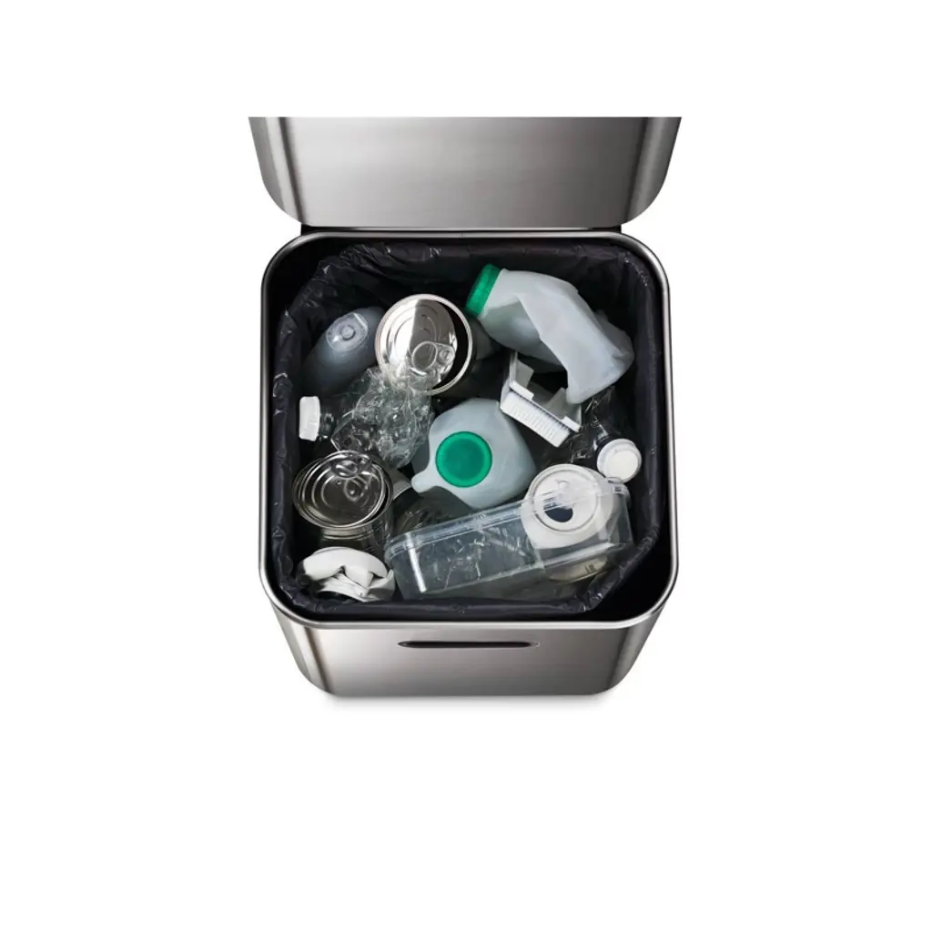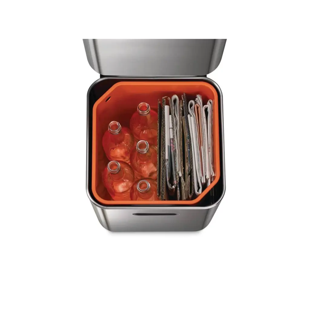 Joseph Joseph Totem 40l Dual Trash Can And Recycle Bin Stainless: Kitchen Recycling Bin, Removable Inner Bucket, Silver
