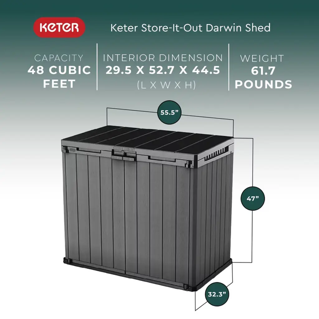 Keter Outdoor Storage Shed, Durable Resin, Compact & Portable, Store-it-out Darwin, Grey – Lockable Lid And Sturdy Floor For Garden Tools, Trash Bins