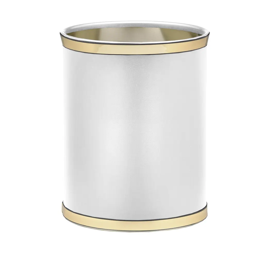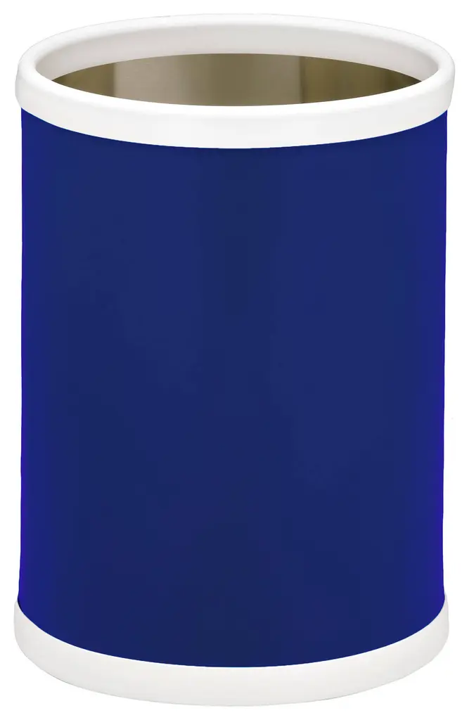 Toss your trash into the stylish and discreet Kraftware Round Wastebasket. Featuring a dark blue vinyl exterior cover and protective plastic edges, this metal can is durable and simple. Its petite size is perfect for small spaces in bathrooms, offices, guest rooms, and bedrooms.