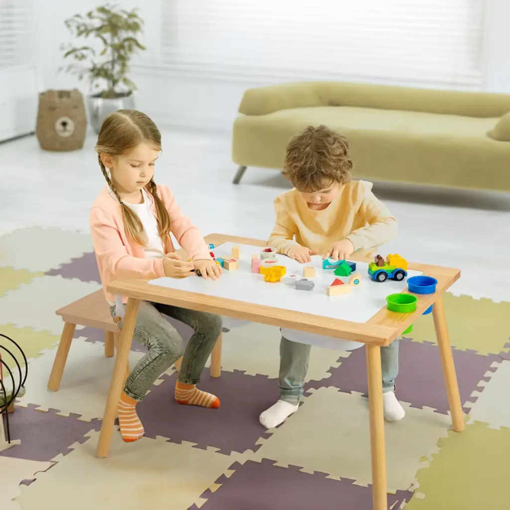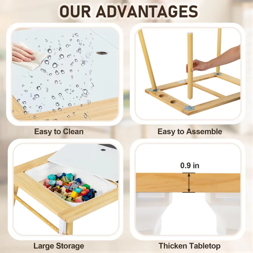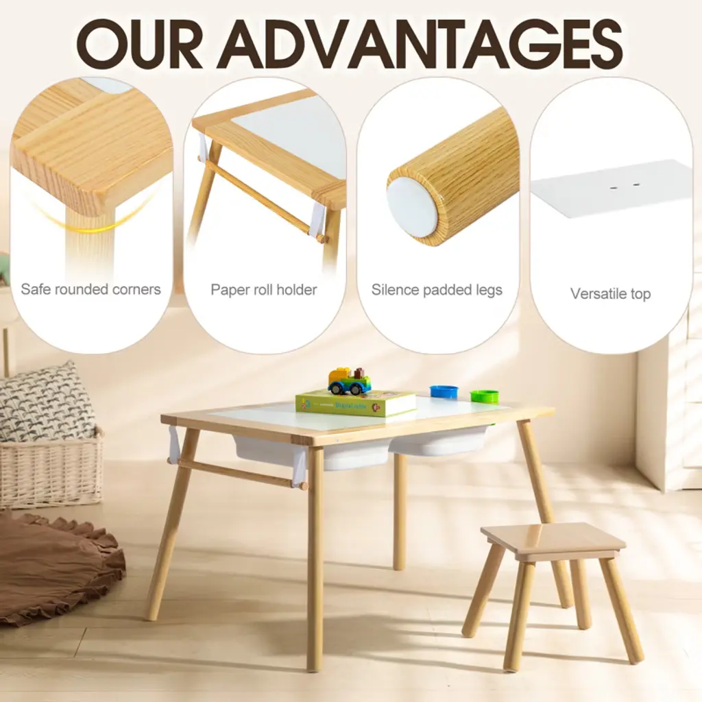 Encourage creativity and learning with this versatile Children's Sensory Table with Stool. Thoughtfully designed to cater to a wide range of activities, this multi-functional table is perfect for play, study, dining, reading, and crafting. Its robust natural solid wood construction ensures safety and durability, while its built-in storage features keep toys, art supplies, and other essentials neatly organized. Whether in a playroom, daycare, or classroom, this sensory table seamlessly combines functionality with a sleek, modern design, making it a delightful addition to any kid-friendly space.