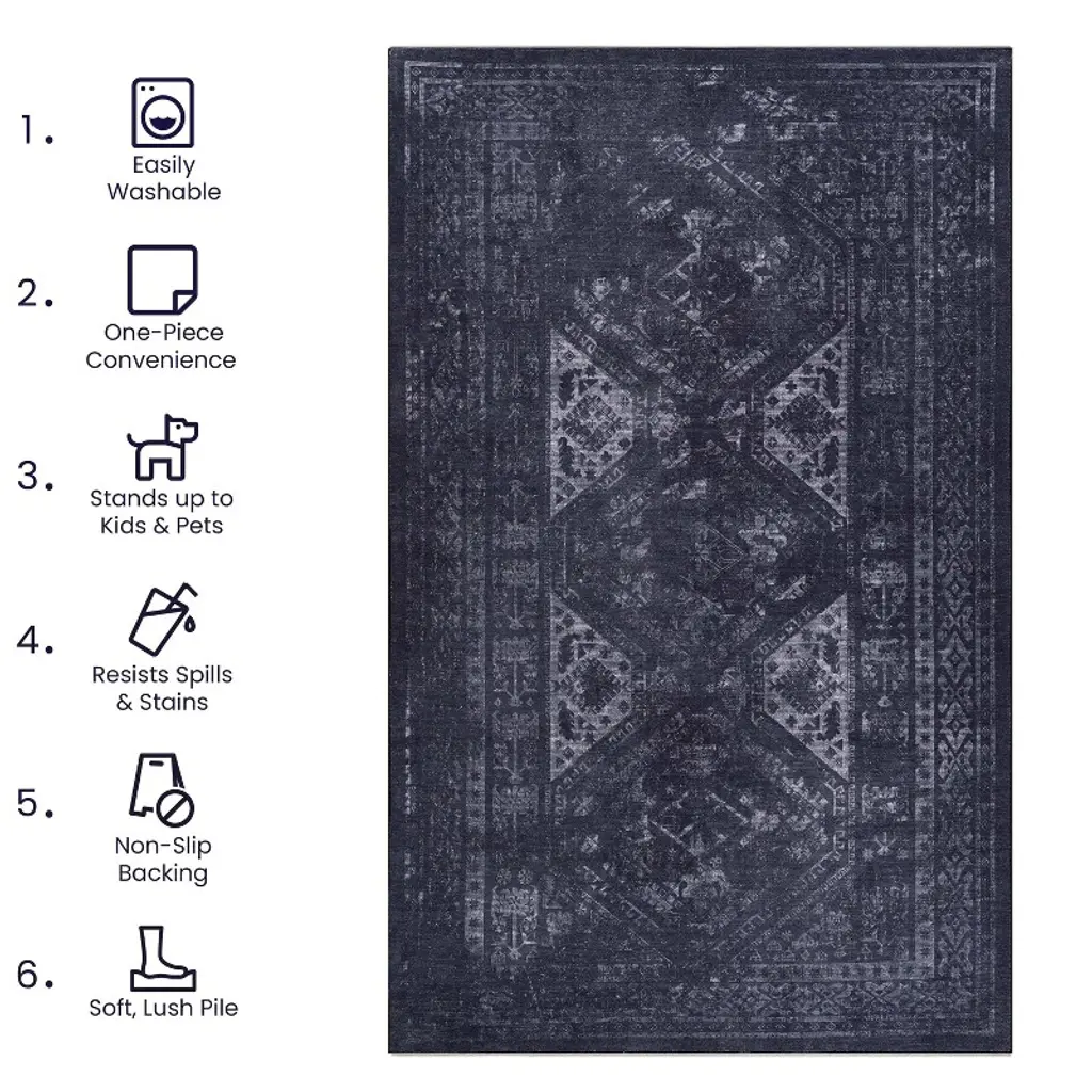 Kwpzqeb Washable Area Rug, Ultra Soft Area Rug With Non-slip Backing & Durable Edge Binding, Vintage Rugs For Living Room, Bedroom (Gray, 9'x12')