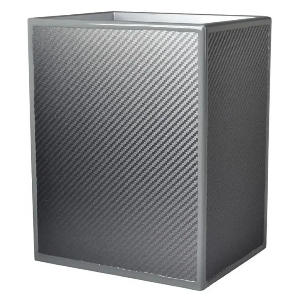 Carbon fiber, the technological marvel found in aeronautics and motorsports, is now available in bath accessories. Using 3M DI-NOC to achieve the same effect; Le Mans is a collection that is durable, washable, and handsome. Black color w/coordinating enamel trim. Established 30 years ago in New York, Mike & Ally is known worldwide for their elegant, handmade enamel and lucite bath accessories. All items custom made to order; please allow 6 weeks for delivery. Please make your selection carefully; orders cannot be cancelled once submitted and items are not returnable.
