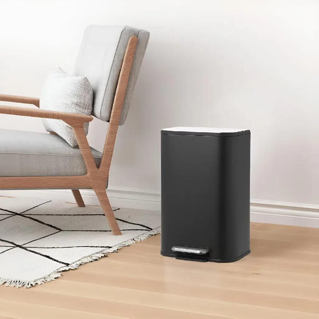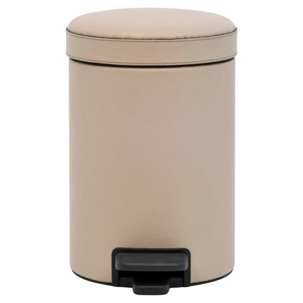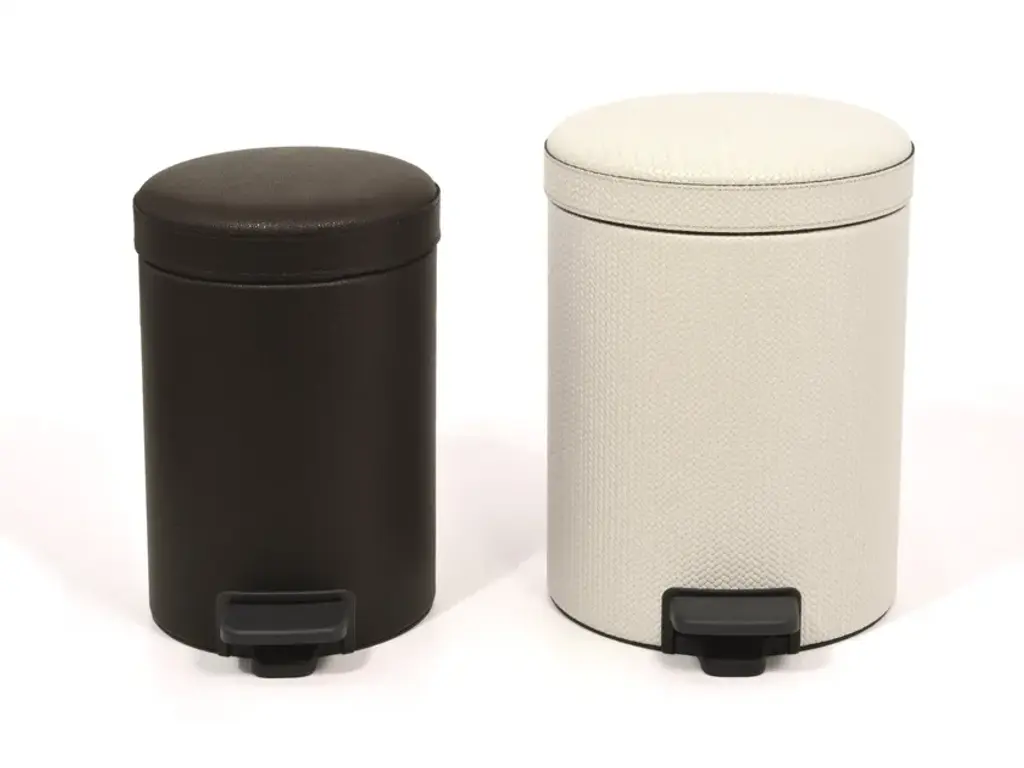 A chic and sleek aesthetic for waste bin with a black pedal. Available with a 3 and 5 liter capacity and a soft closing function that will avoid any loud noises. Finished in neutral tones leather to perfectly match with an array of bathroom décor style.