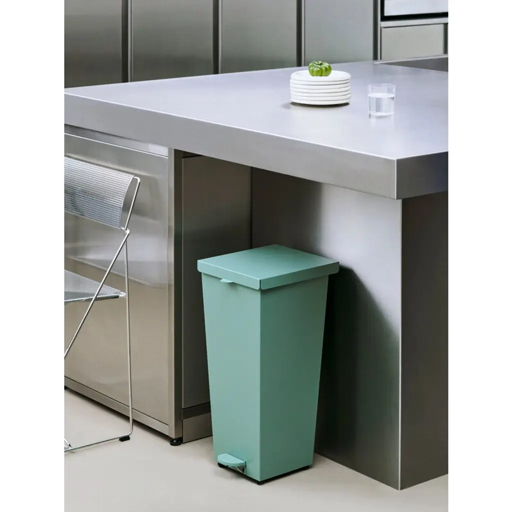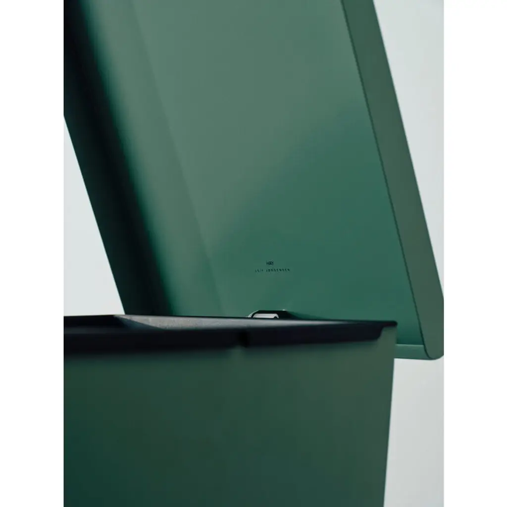 HAY’s Loop Bin, designed by Leif Jørgensen, is a minimalist pedal bin ideal for waste sorting in kitchens, bathrooms, and office spaces. Made of stainless steel, the bin features a pedal-operated lid with a soft-closing mechanism and a recycled plastic inner ring to keep the bin liner neatly in place. The tapered, angular shape and monochrome color finish complete the sleek, contemporary look of the Loop Bin.