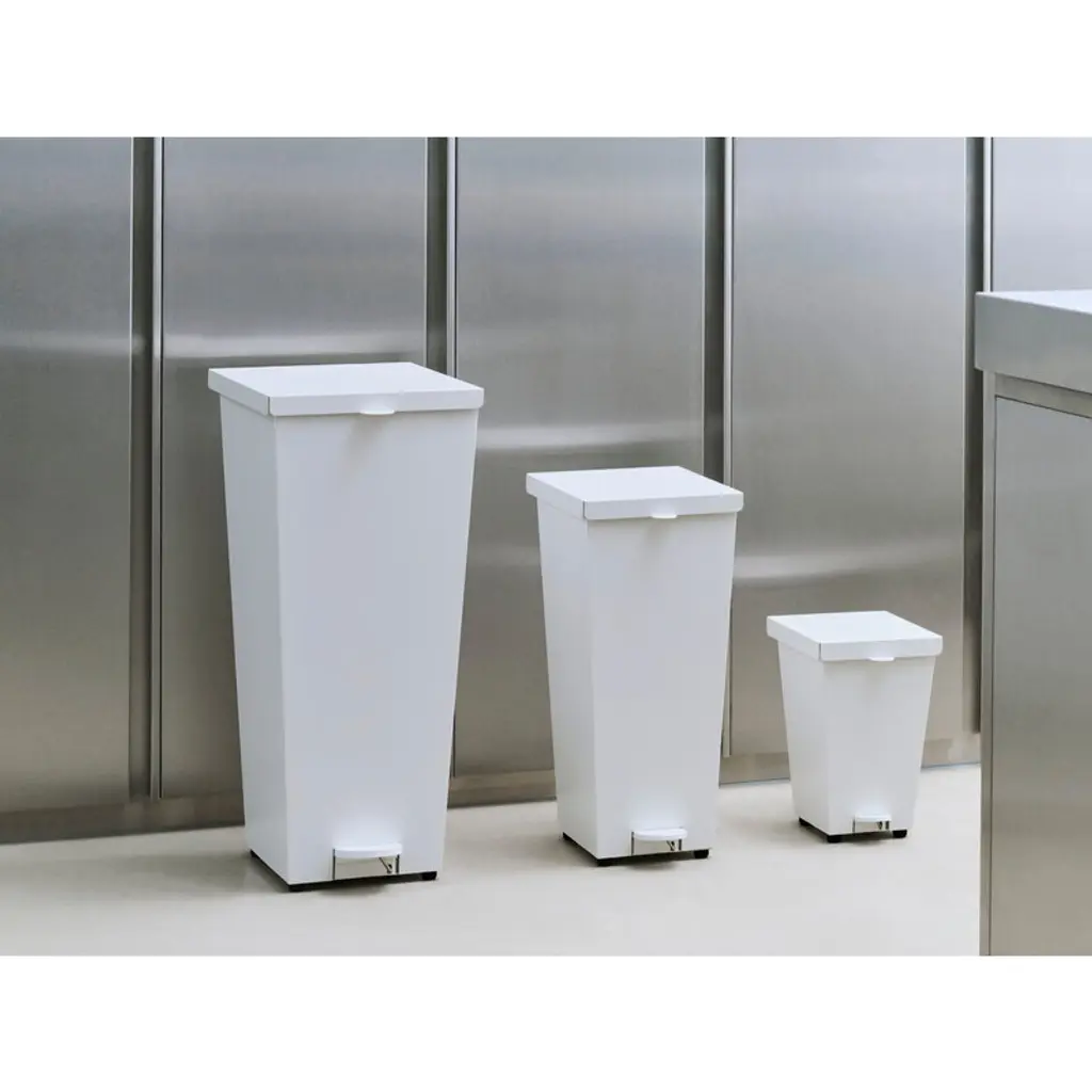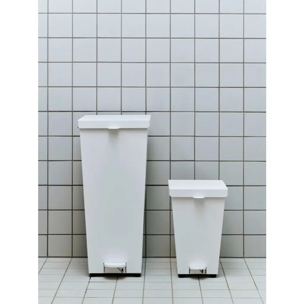 HAY’s Loop Bin, designed by Leif Jørgensen, is a minimalist pedal bin ideal for waste sorting in kitchens, bathrooms, and office spaces. Made of stainless steel, the bin features a pedal-operated lid with a soft-closing mechanism and a recycled plastic inner ring to keep the bin liner neatly in place. The tapered, angular shape and monochrome color finish complete the sleek, contemporary look of the Loop Bin.