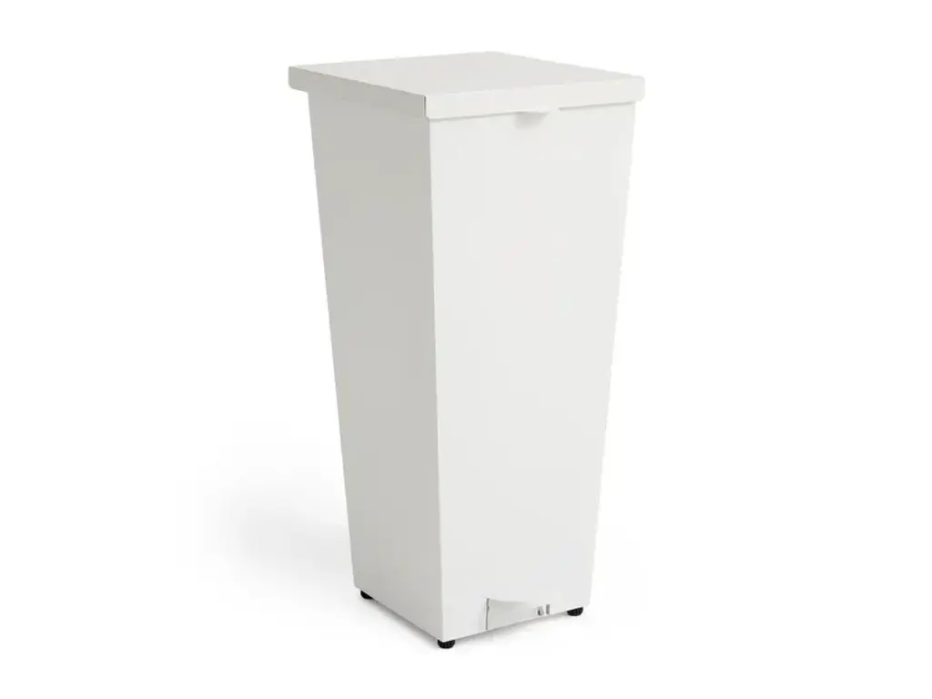Loop is a pedal bin made of stainless steel and bag ring made of recycled ABS.Designed for HAY by Leif Jørgensen, Loop Bin is a rectangular pedal bin that offers efficient waste management in a simple, aesthetic design. The soft-close lid and foot pedal provide easy and convenient opening, while the inside bag ring neatly conceals the bag and keeps it firmly in place. Made in stainless steel with bag ring in recycled ABS, Loop’s different size and colour options make it a versatile choice suitable for most uses and rooms.