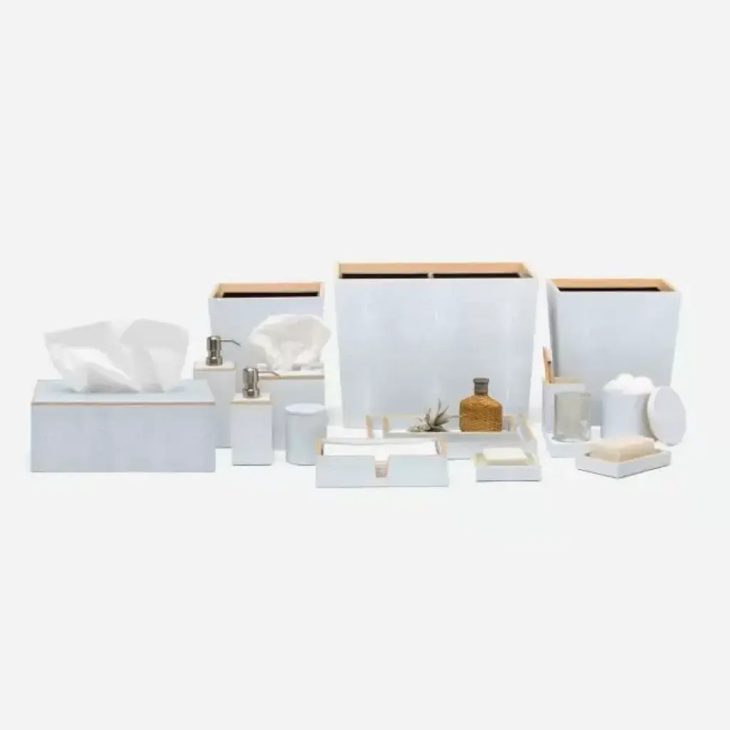 Up a bath’s elegance and add an aesthetic edge with our striking realistic faux shagreen Manchester set. Each piece is crafted to highlight the natural “eye” pattern inspired by authentic shagreen, and topped with a veneer trim. The designers at Pigeon & Poodle believe the details of a home are just as important as the furniture. A gorgeous toothbrush holder or handcrafted canister can elevate an entire bath, the perfect frame can heighten the feel of a whole space, and a good-looking storage basket can be your look’s missing link. With thoughtful design and top-notch craftsmanship, Pigeon & Poodle create home accessories with the care and attention typically reserved for larger pieces of décor.