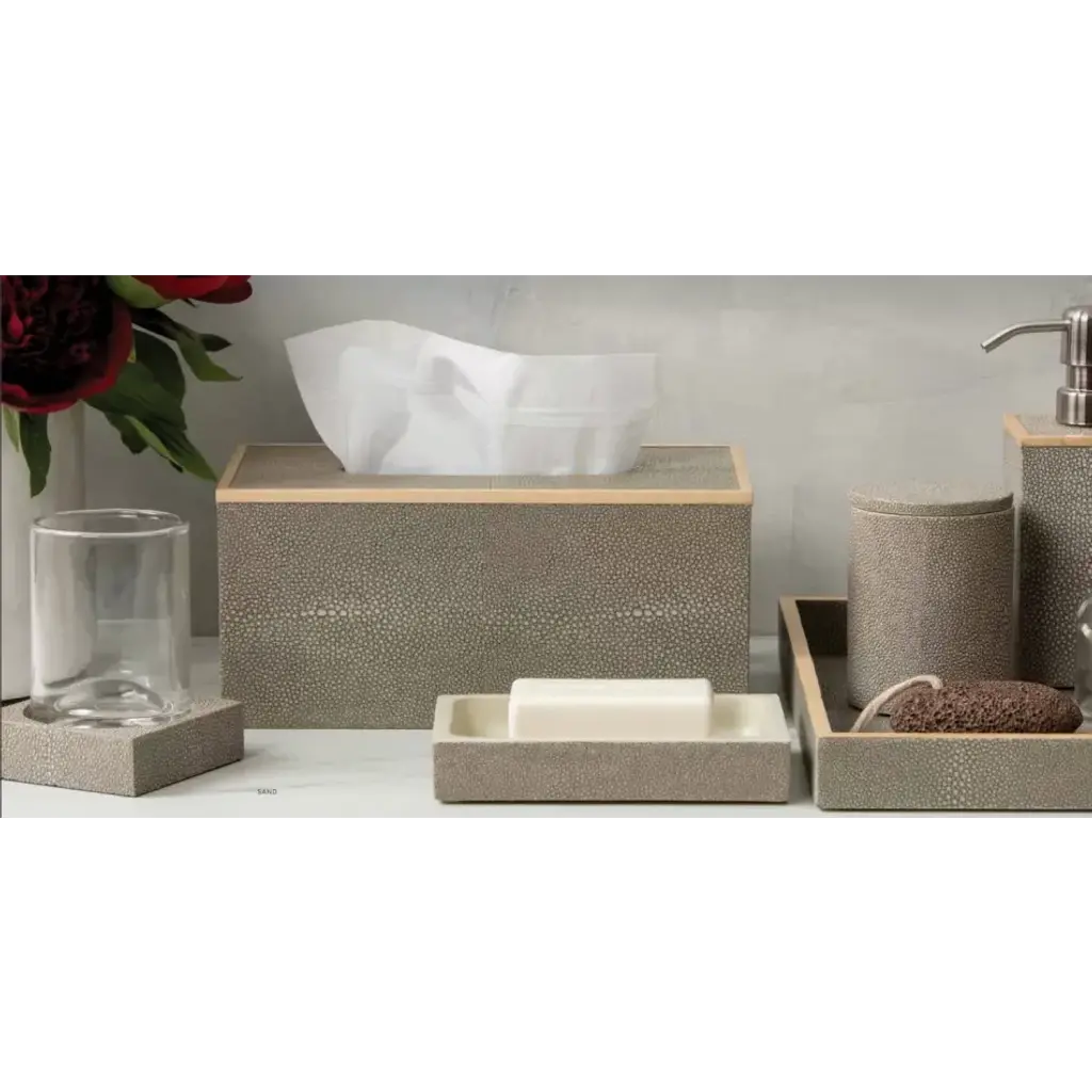 Up a bath’s elegance and add an aesthetic edge with our striking realistic faux shagreen Manchester set. Each piece is crafted to highlight the natural “eye” pattern inspired by authentic shagreen, and topped with a veneer trim. The designers at Pigeon & Poodle believe the details of a home are just as important as the furniture. A gorgeous toothbrush holder or handcrafted canister can elevate an entire bath, the perfect frame can heighten the feel of a whole space, and a good-looking storage basket can be your look’s missing link. With thoughtful design and top-notch craftsmanship, Pigeon & Poodle create home accessories with the care and attention typically reserved for larger pieces of décor.