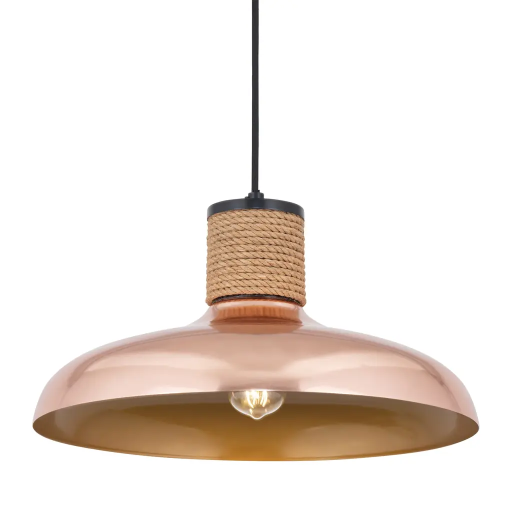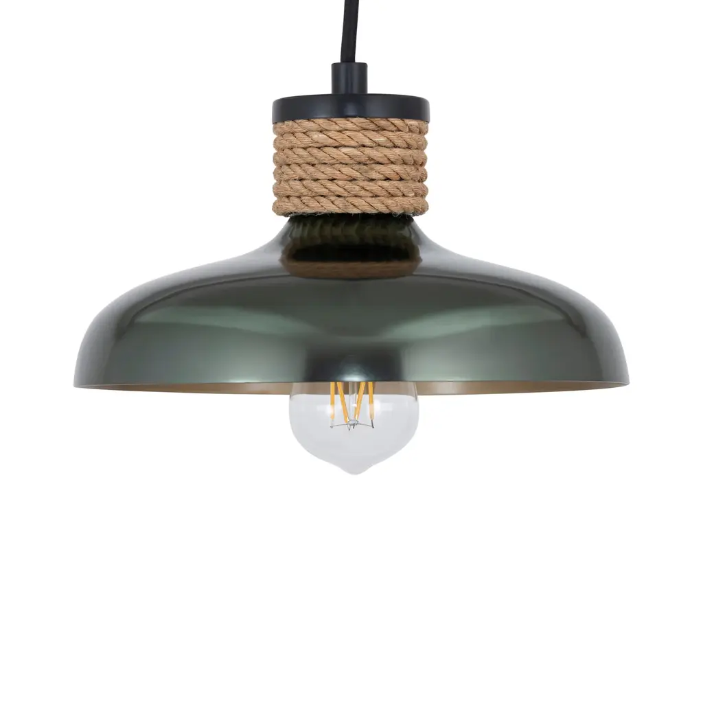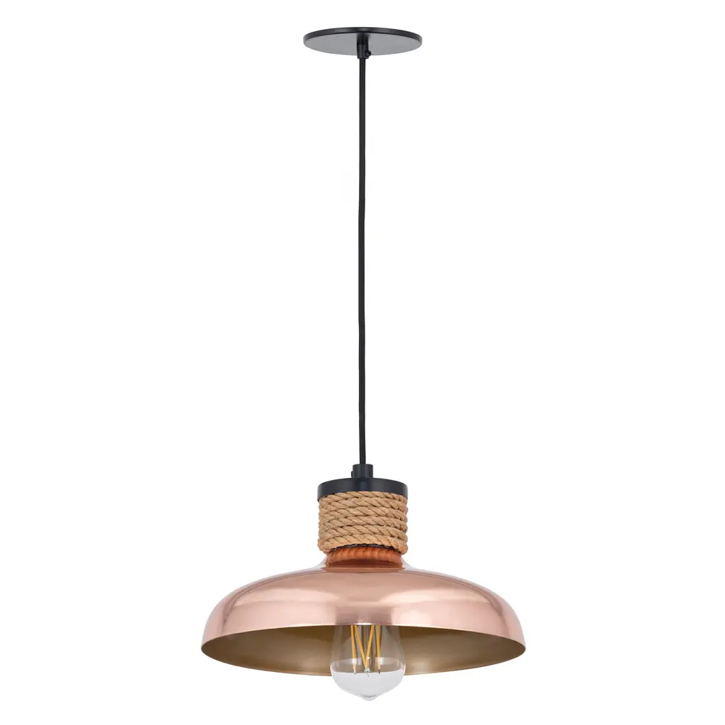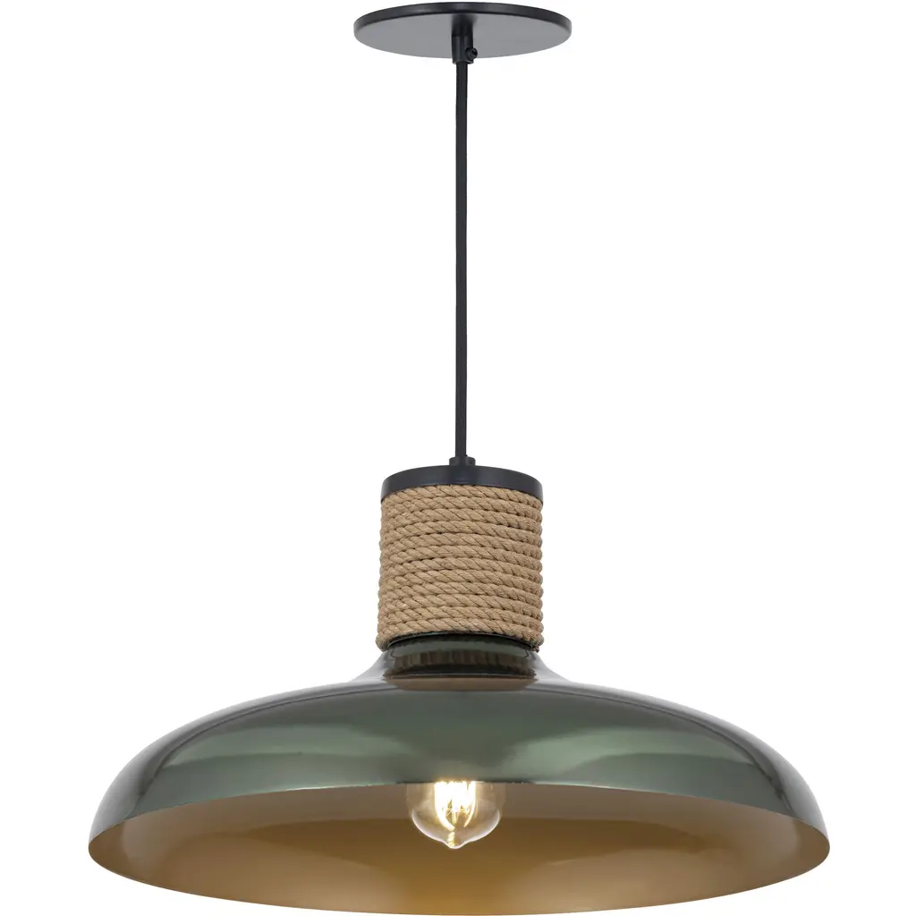 Drawing inspiration from industrial warehouse or farmhouse lighting, these classic shades feature a rayon fabric adjustable cord and hand-wound rope detail. The rustic elements are paired with spun metal shades.Features:Dimensions:Electrical Specifications: