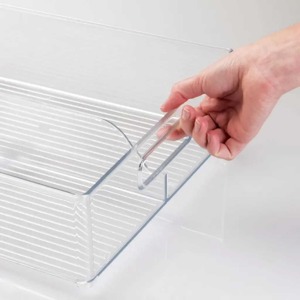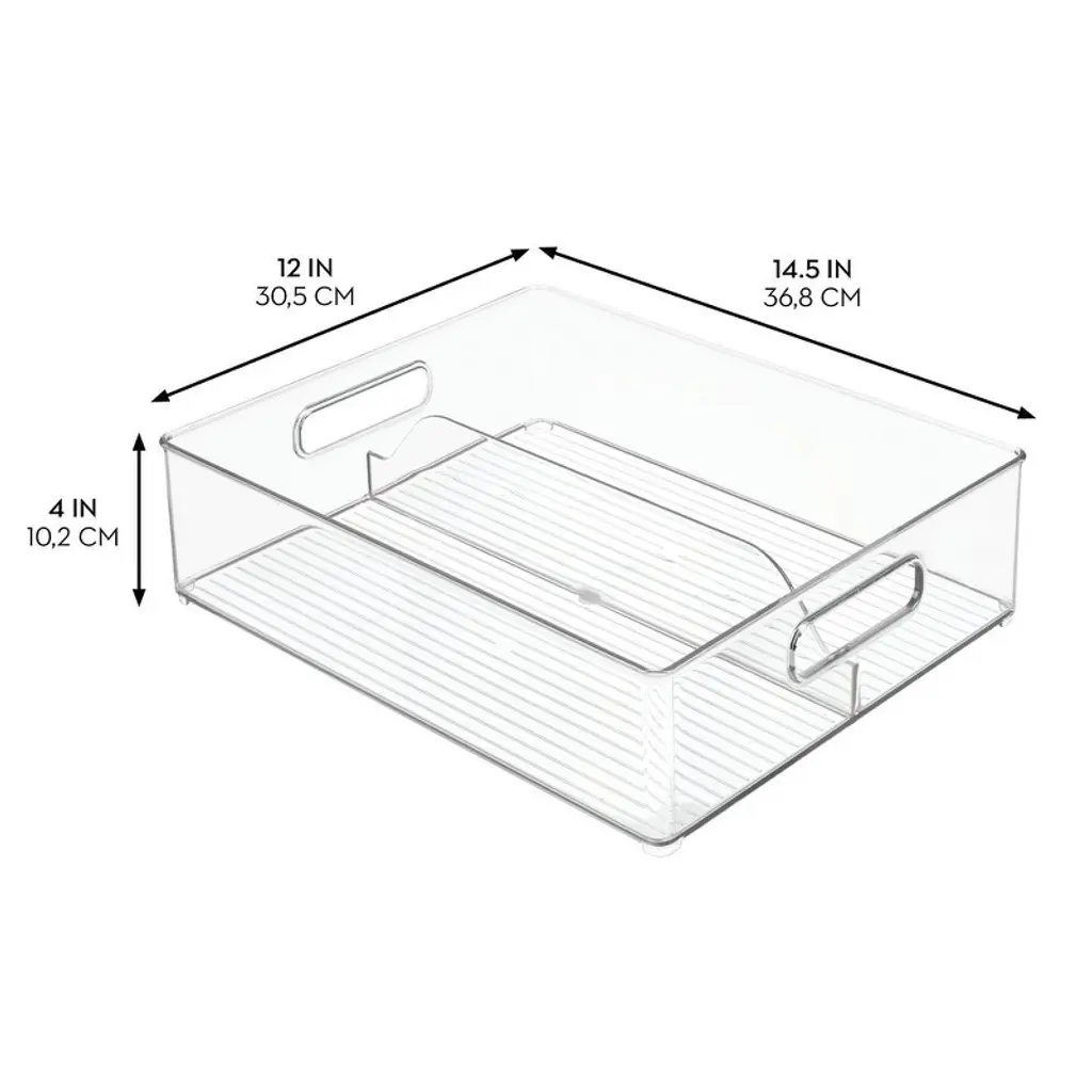 The foundation for an orderly kitchen starts with function and the iDesign Linus Divided Pantry Bin will be a worthy addition to your storage solutions. Equipped with a middle divider, this no-fail organizer sorts and stores a variety of pantry staples, allowing you to categorize items by size, shape, or use. Its crystal-clear construction & open-top design allow for instant visibility and easy label identification, simplifying item location and retrieval. Use in multiples to create a cohesive look or stack vertically to maximize space for long-lasting organization.