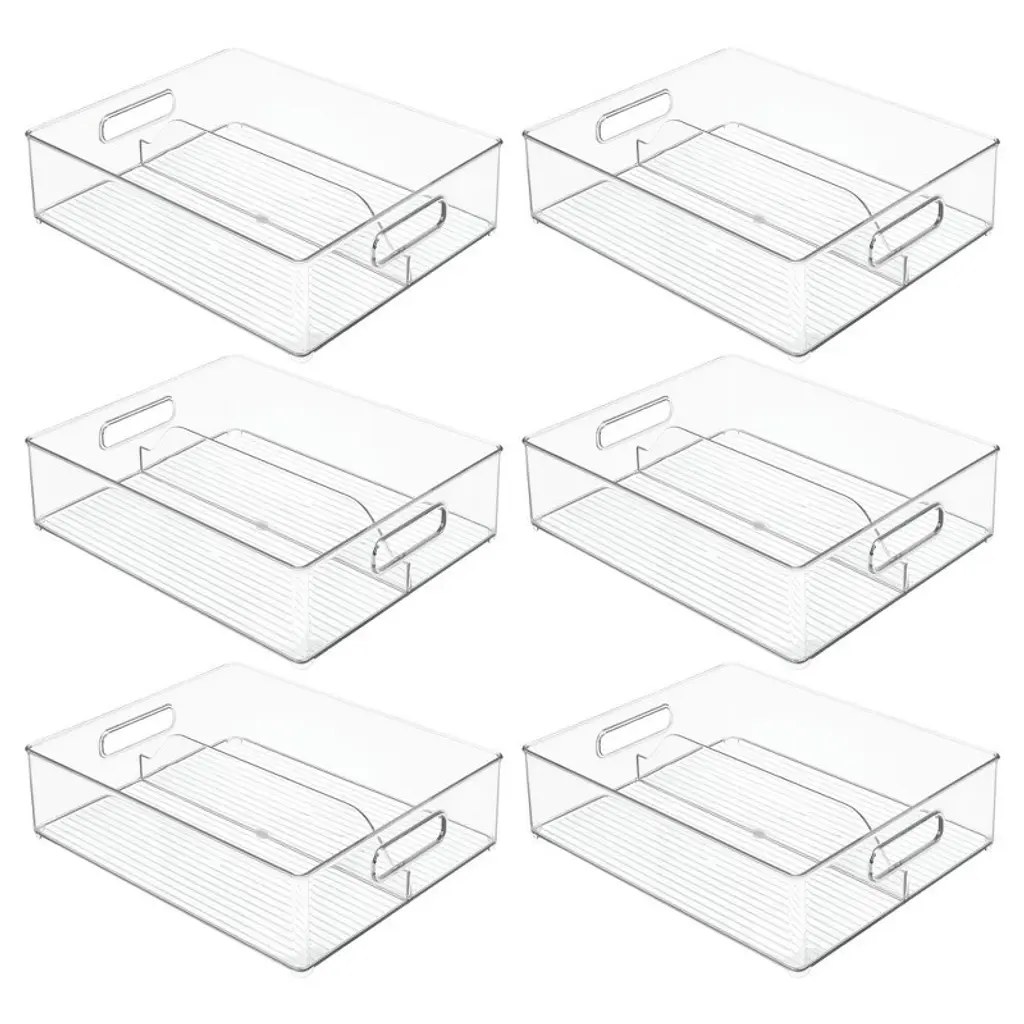 Mdesign Divided Storage Bin For Fridge Or Pantry, Set Of 6, Clear, Made In Usa