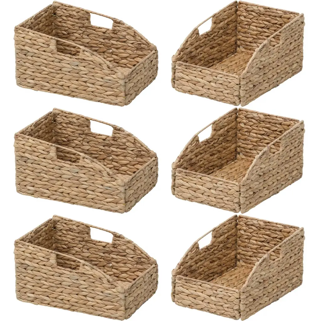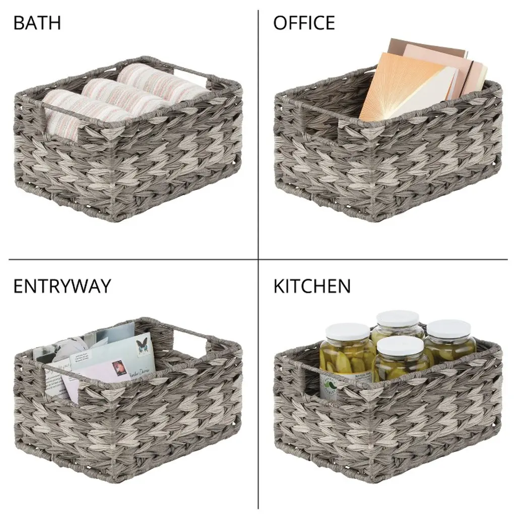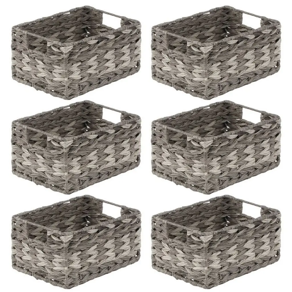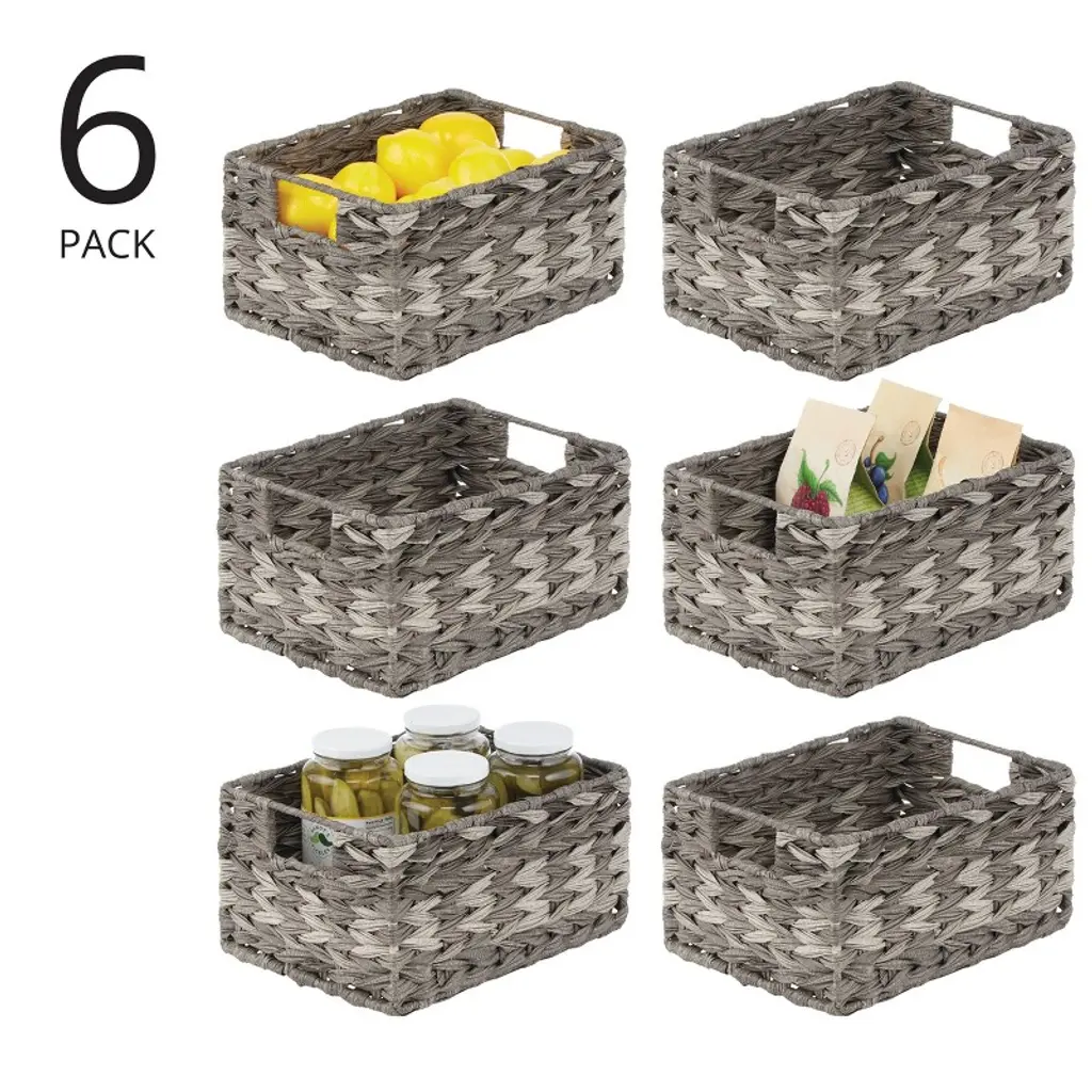 Mdesign Woven Plastic Kitchen Pantry Storage Bin Basket - 6 Pack - Gray Ombre