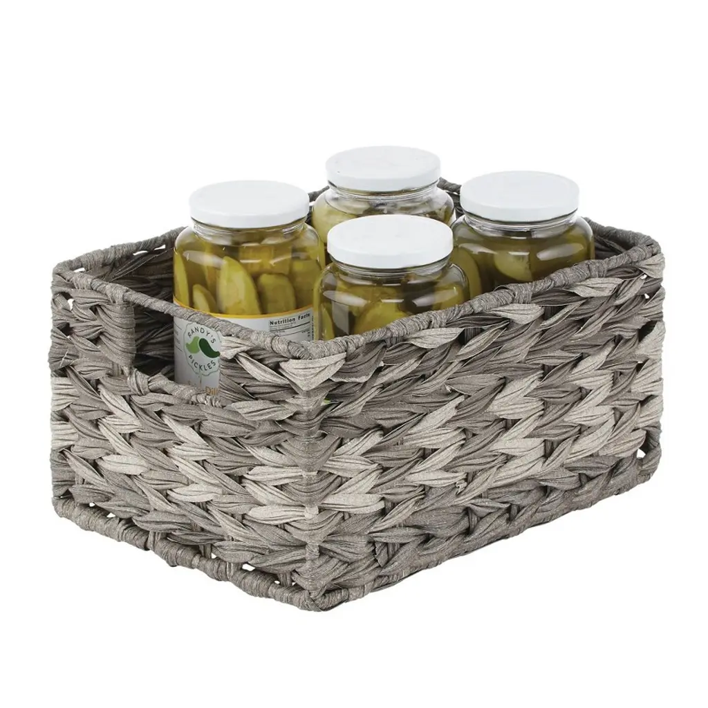 This Woven Pantry Storage Bin Basket from mDesign makes it simple and easy to store and organize everything from kitchen linens, fruits, vegetables, and snacks to arts and crafts, cleaning products, health and beauty items and more! The open tops of this bin let you see what's inside. The versatile design works with any farmhouse, modern, eclectic, or transitional decor. The built-in handles provide portability to easily move these baskets on and off shelves and counters. Use multiple baskets for a coordinated set or go vertical and stack for extra storage space. mDesign - Solutions for Home. Solutions for Life.