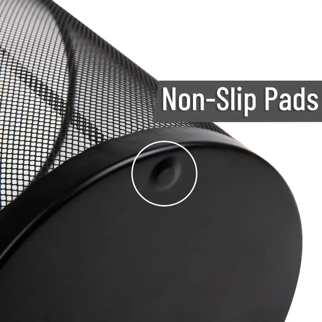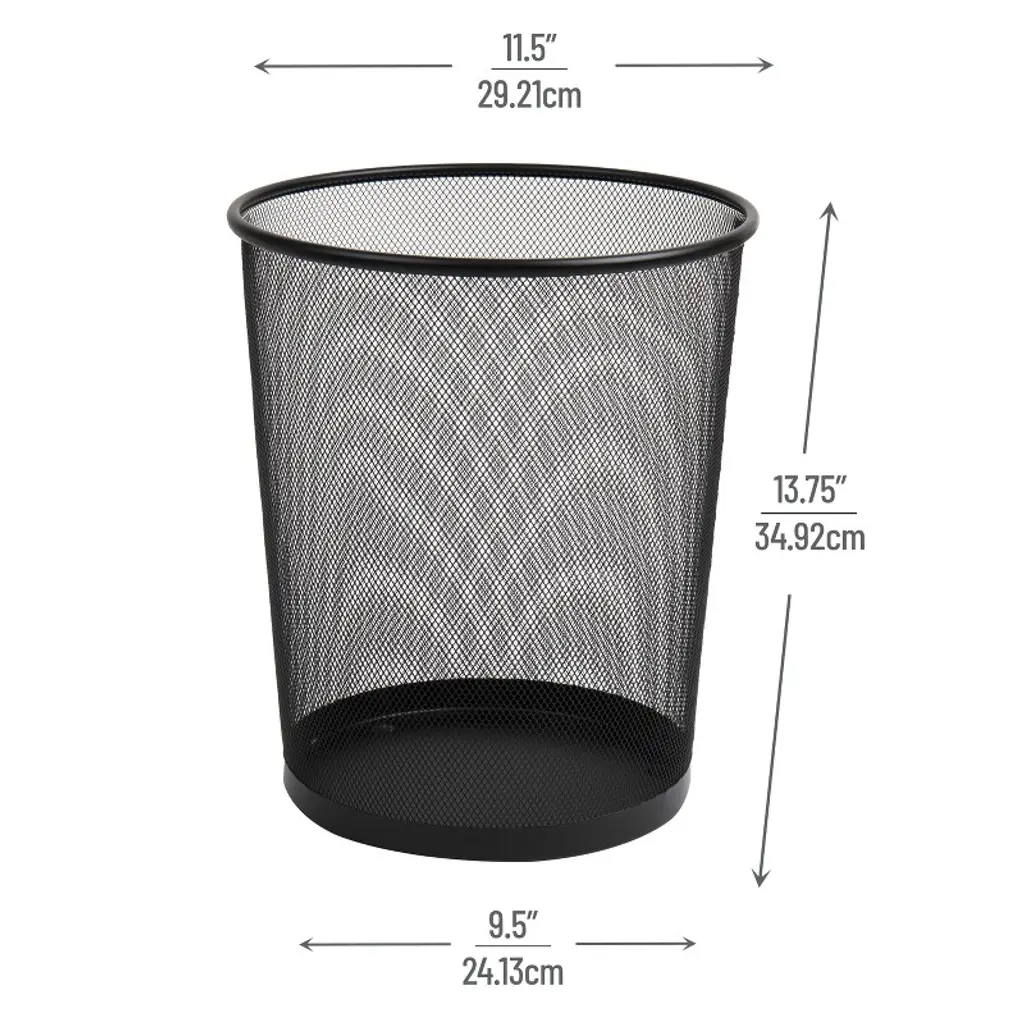 Sleek, Versatile, and Convenient: Metal Mesh Garbage Can Set Bring sleek, industrial style to your office, bathroom, or kitchen with this set of two metal mesh garbage cans. Its mesh design promotes airflow, reducing unpleasant odors and build-up, while the solid metal edge at the bottom collects small amounts of liquid to prevent spills. The steel mesh is reinforced at the top and bottom for durability, and the smooth rounded lip at the top adds a touch of elegance. This lightweight, easily portable basket can be moved from room to room as needed, fitting seamlessly into a variety of spaces. It is designed to fit easily under a desk or inside a cabinet, offering convenience and flexibility in your waste disposal. Designed to work with or without liners, this bin can be hand-washed with warm soapy water for easy cleaning. The stainless steel construction helps maintain its freshness over time. One of the great advantages of a mesh design is its transparency, which allows you to see how full the bin is. No more guessing with opaque garbage cans - switch to mesh and manage your waste more efficiently!