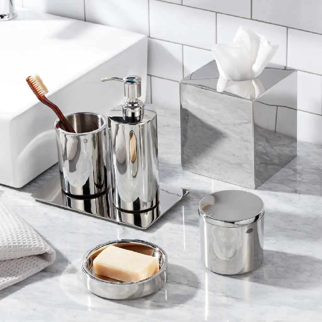The Modern Round Bath Accessories Collection by Roselli features easy to clean, sophisticated, stainless steel to elevate your bathroom to the next level of design.