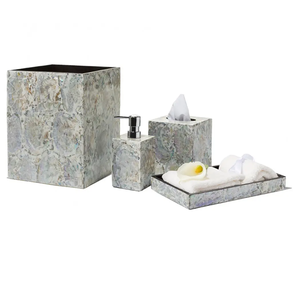 Mother Of Pearl Natural Wastebasket 8.7" X 8.7" X 11"