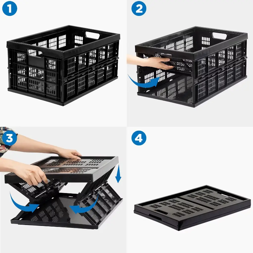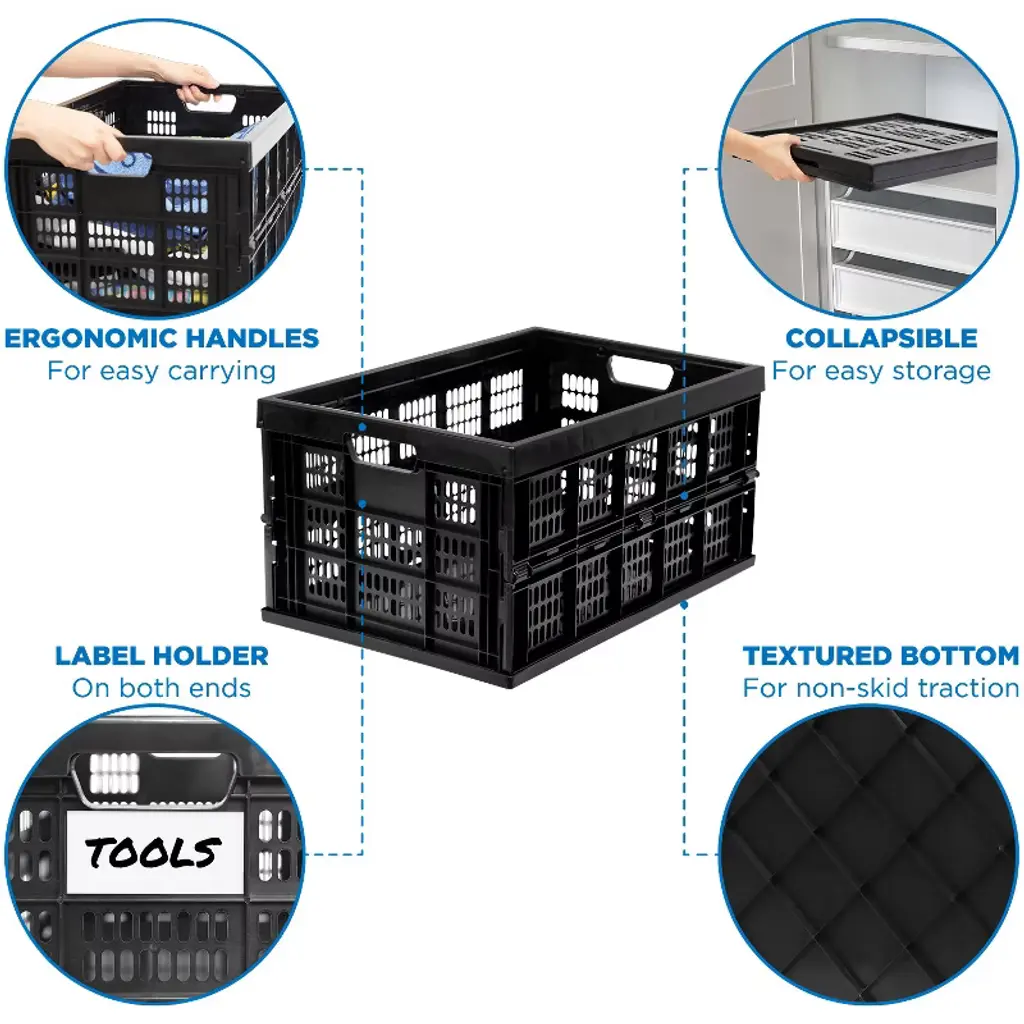 You should always have one of these in your trunk! This collapsible storage create folds flat and is set up within a second. Perfect for grocery shopping or transporting goods from one place to another. Lightweight and easy to store when not in use.
