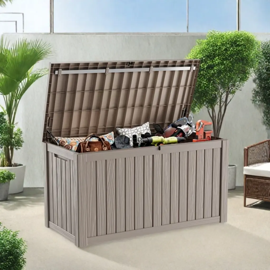 Naysaye Deck Box, 150 Gal Outdoor Storage Deck Box, Small Patio Storage Bin For Garden Tools, Brown, 54.25"*26.5"*28.74"
