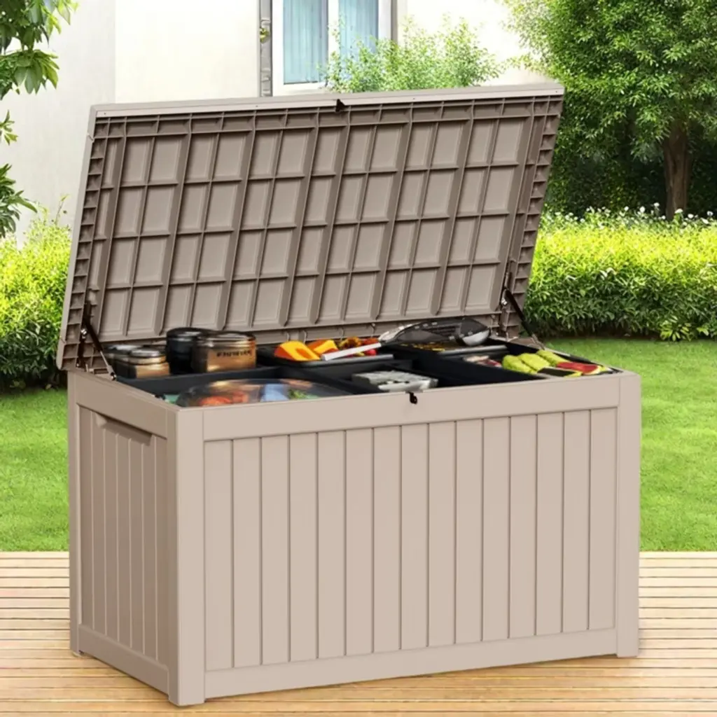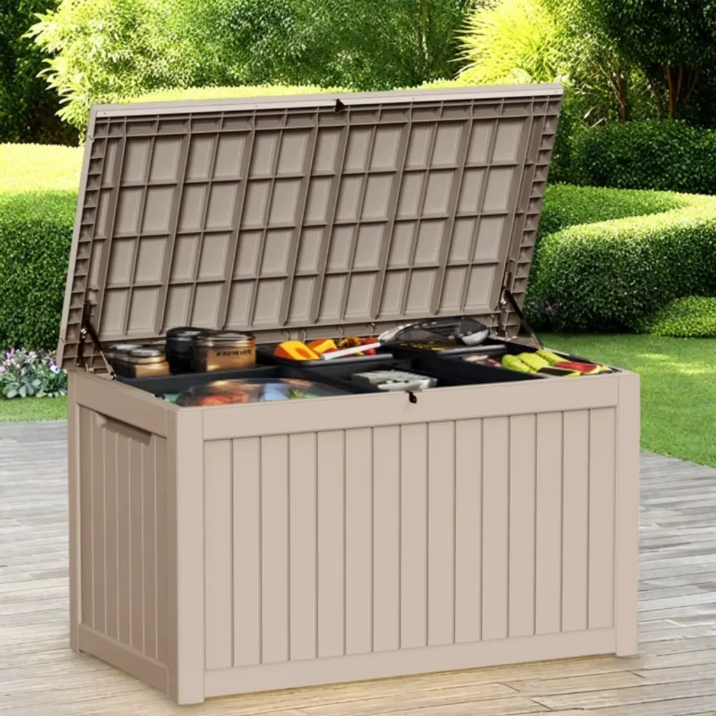 This deck box is designed for easy storage, fitting seamlessly anywhere and keeping items neatly out of sight while remaining easily accessible. Its user-friendly side handles allow for smooth movement and flexible relocation in any outdoor space. Beyond just storage, it serves dual purposes as seating or a workbench, maximizing its functionality. Ideal for patios, gardens, and pool areas, it organizes essentials in one place, providing a tidy solution to outdoor clutter.