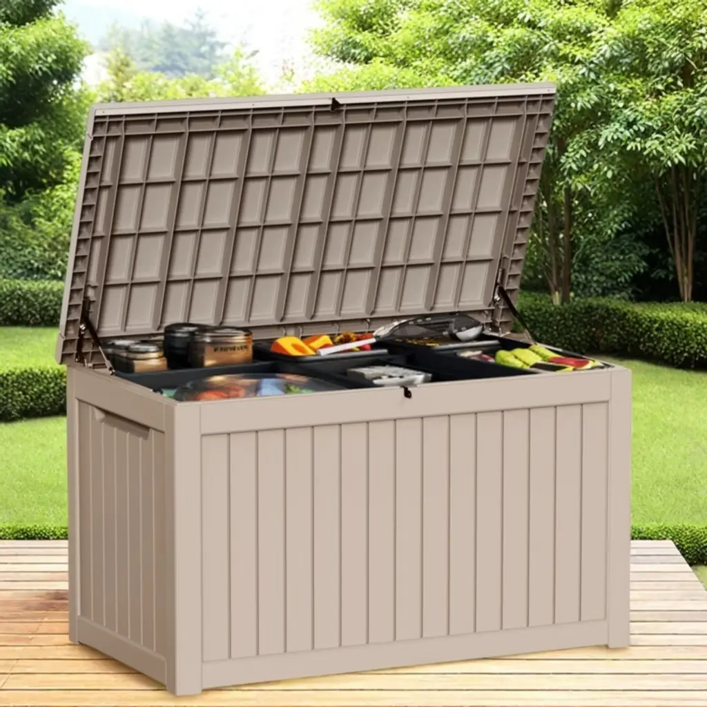 Naysaye Deck Box, 230 Gal Outdoor Storage Deck Box, Small Patio Storage Bin For Garden Tools, Brown, 57.87"*32.24"*33.66"