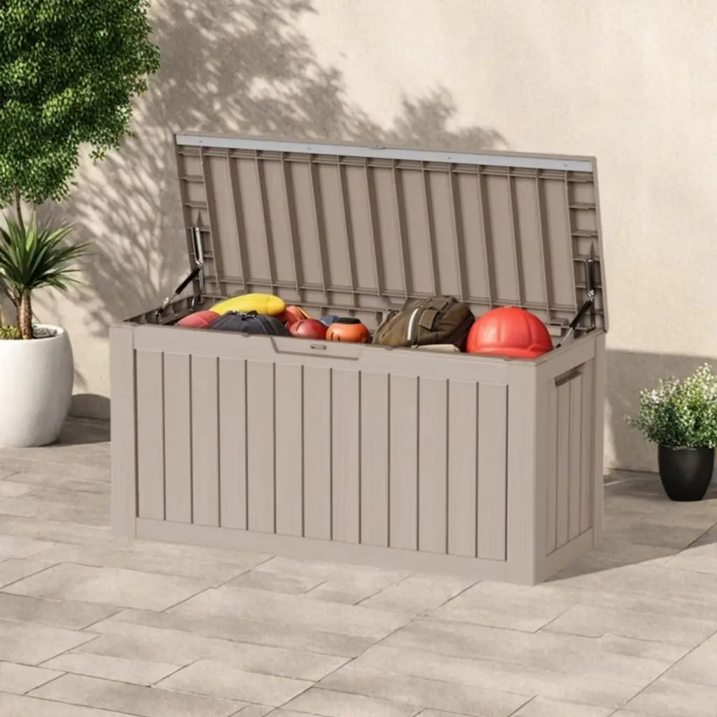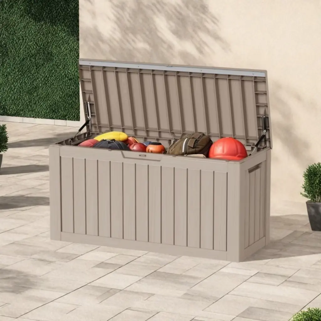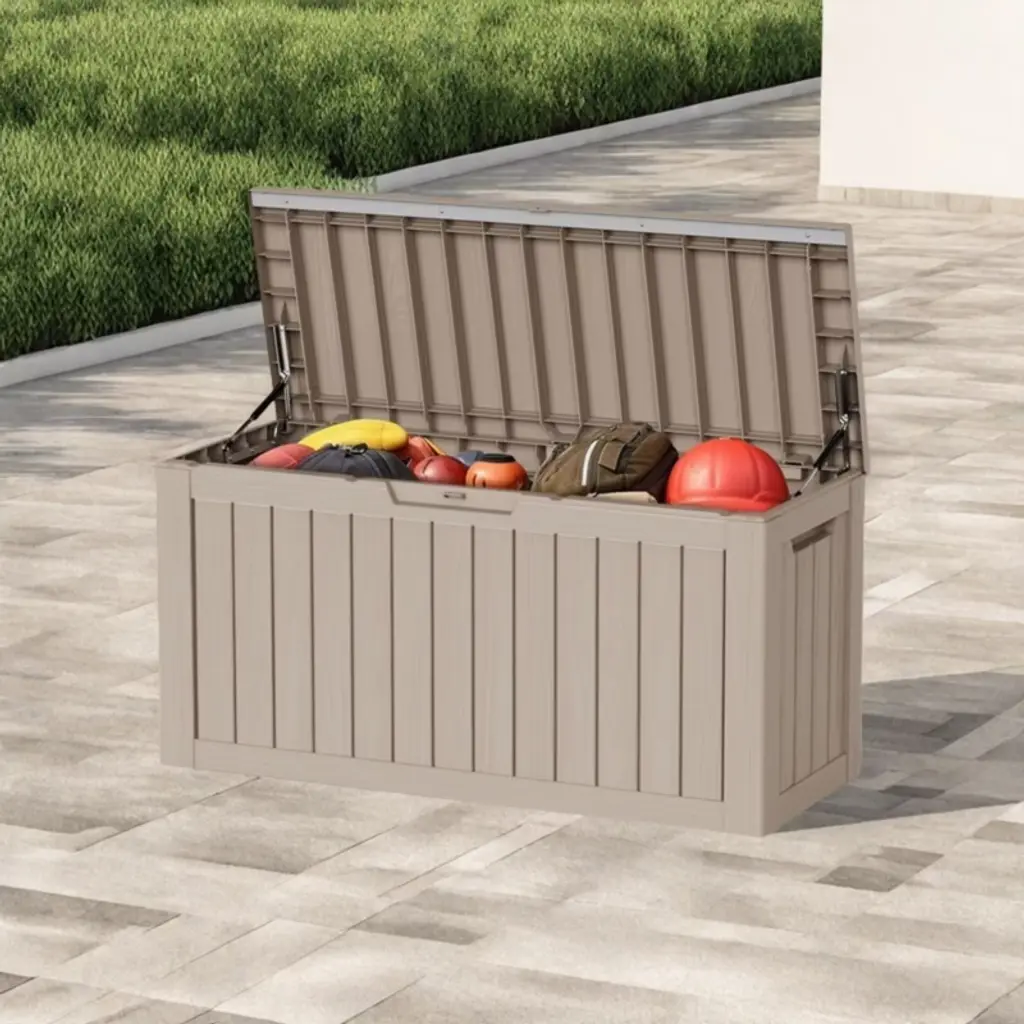 Naysaye Deck Box, 80 Gal Outdoor Storage Deck Box, Small Patio Storage Bin For Garden Tools, Brown, 46.26"*18.7"*23.23"