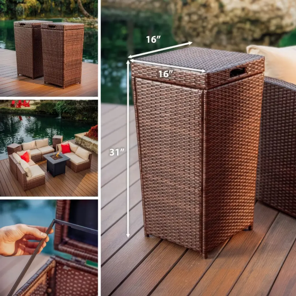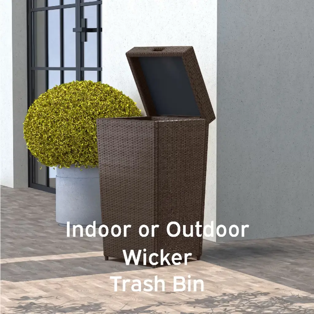 Nestl 30 Gallon Wicker Outdoor Trash Can With Lid - Weather-resistant Garbage Can - Brown