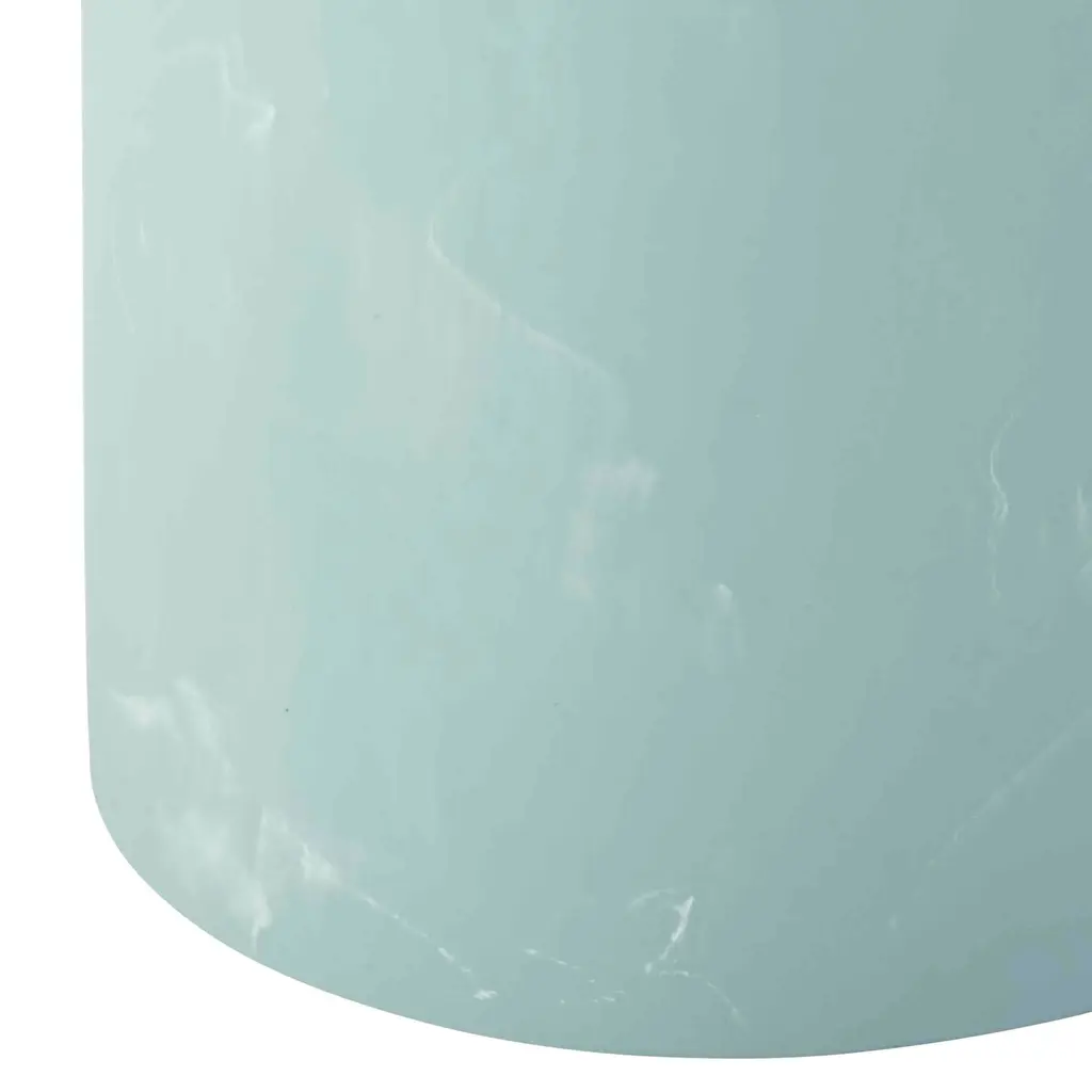 The Nicole Miller Kendall Oasis Wastebasket features a marble-look design in a beautiful shade of aqua blue with subtle white veins. Made of durable resin for easy care and long life. Coordinating accessories, shower curtain, towels and rug available.