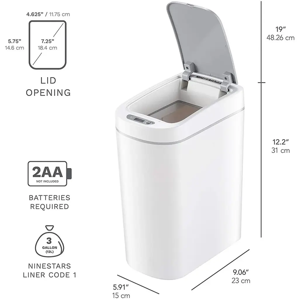 Ninestars White Motion Sensor Trash Can Combo Set, 2 Pc. - 1.85 Gallons/ 7 Liters - 1.85 Gallons/ 7 Liters - White