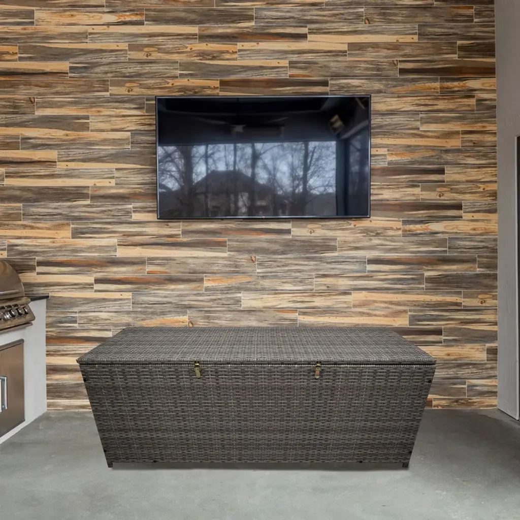Oakland Living 113 Gal Patio Storage Bin - Gray: Wicker Deck Box, Rust-resistant, Spot Clean