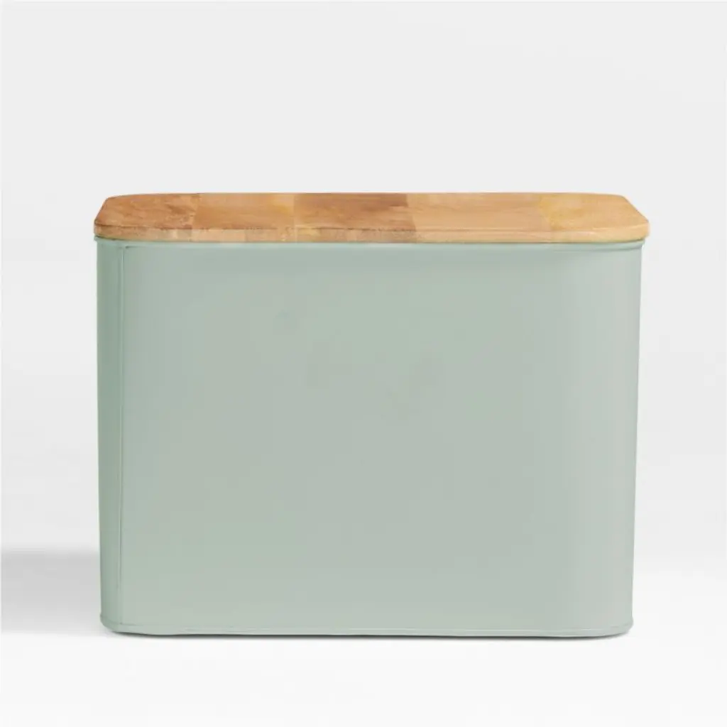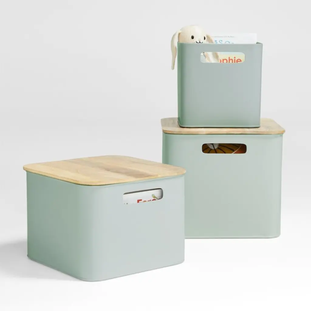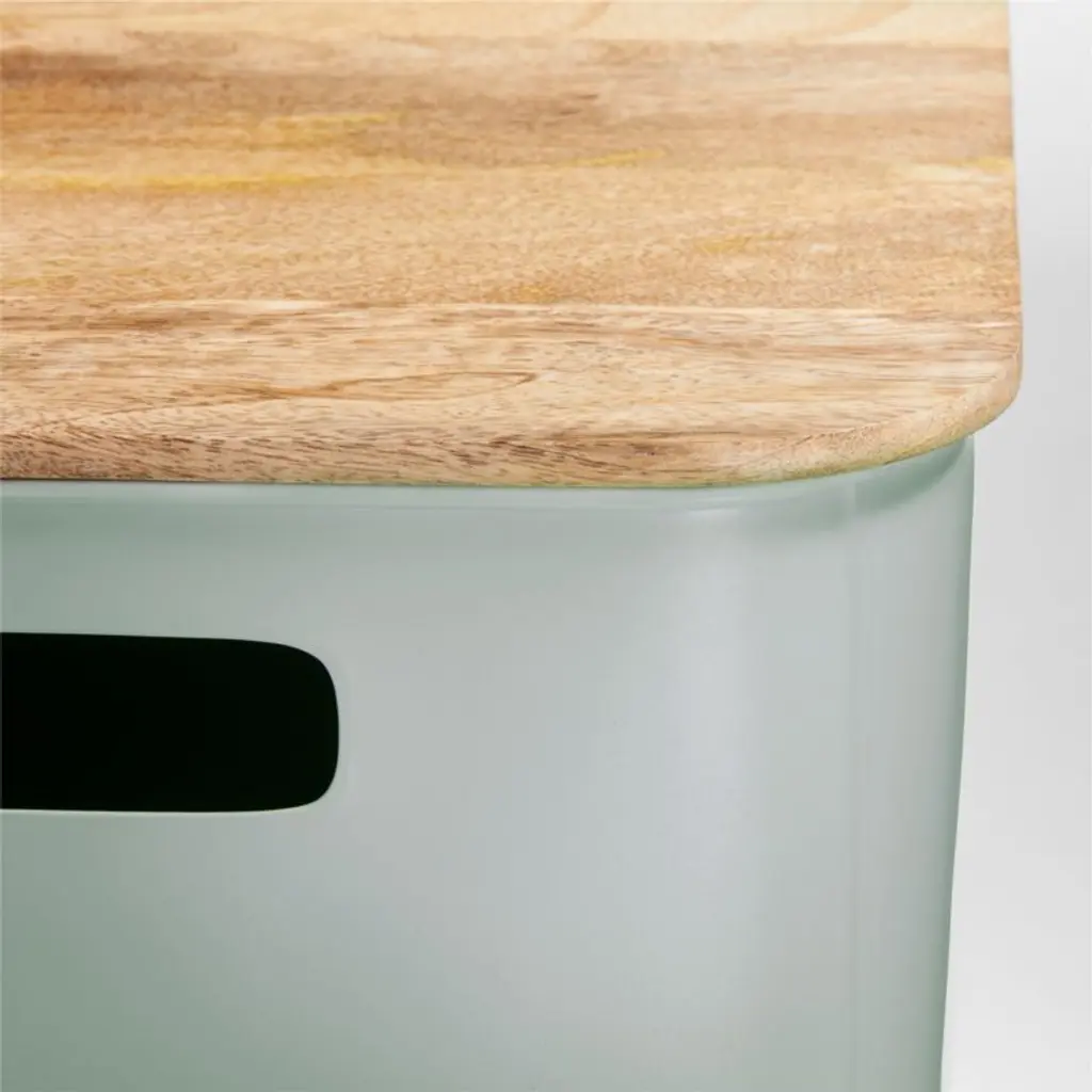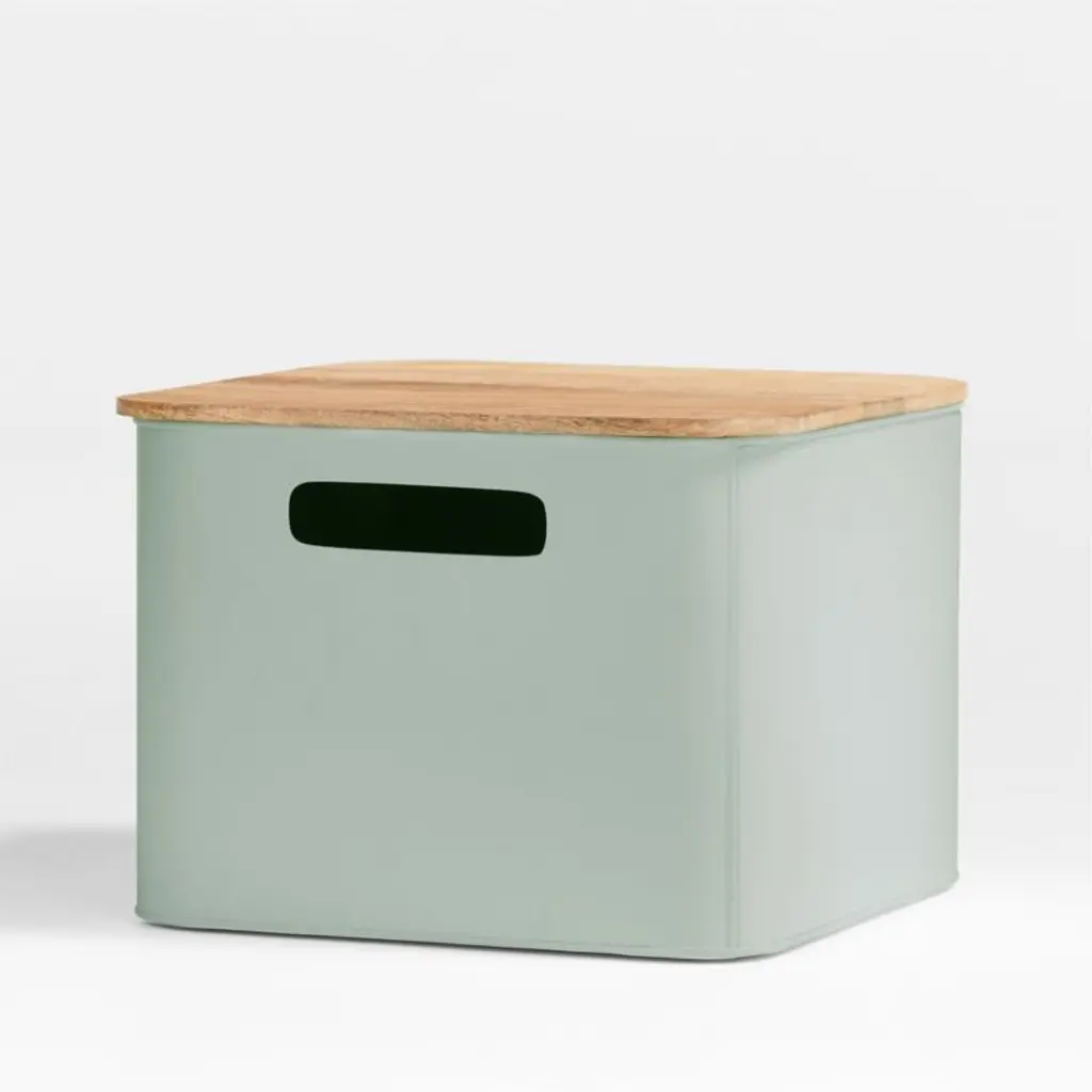 Outline Sage Medium Metal Floor Storage Bin With Wood Lid