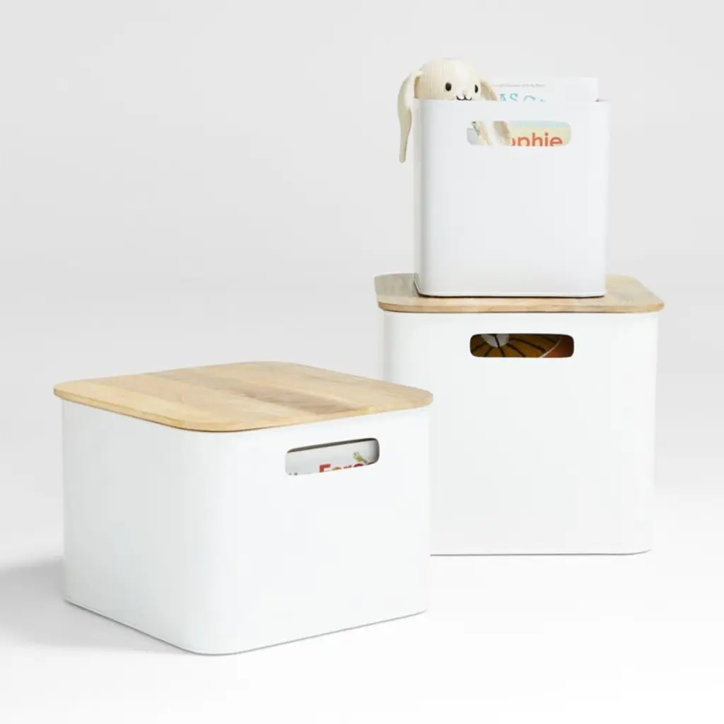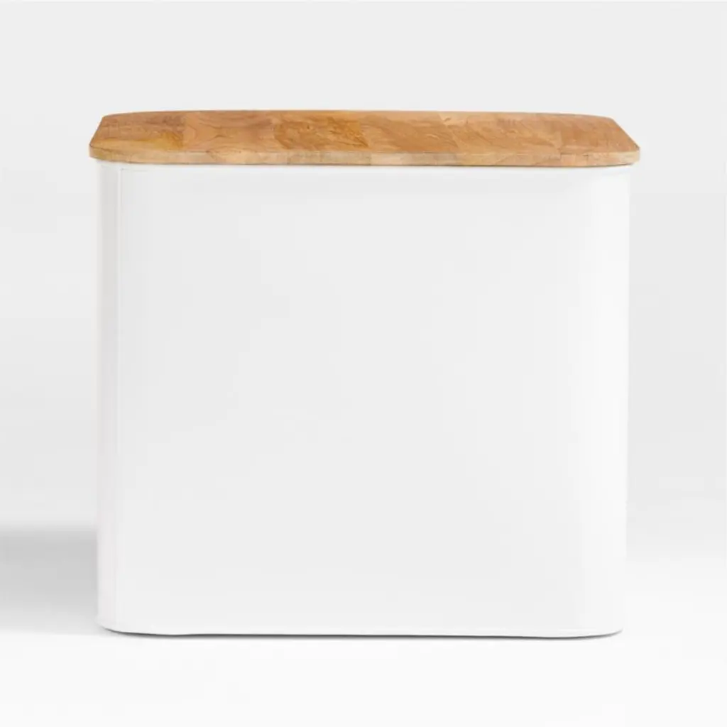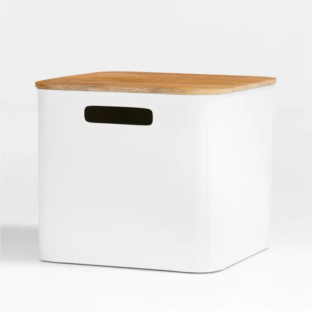 Outline White Large Metal Floor Bin With Wood Lid