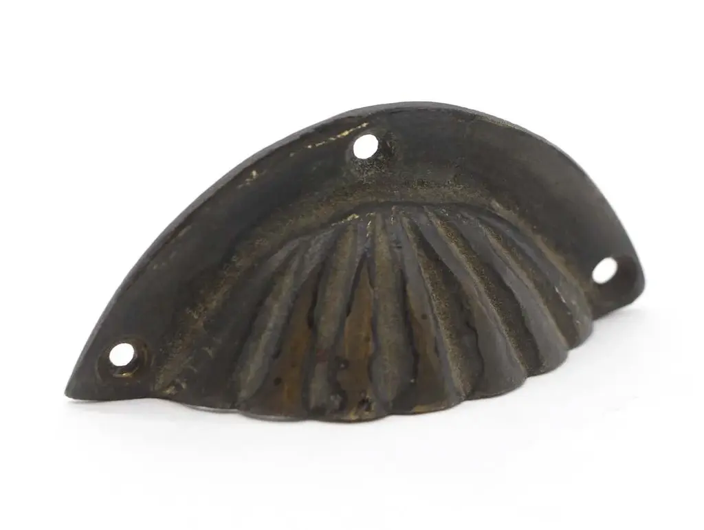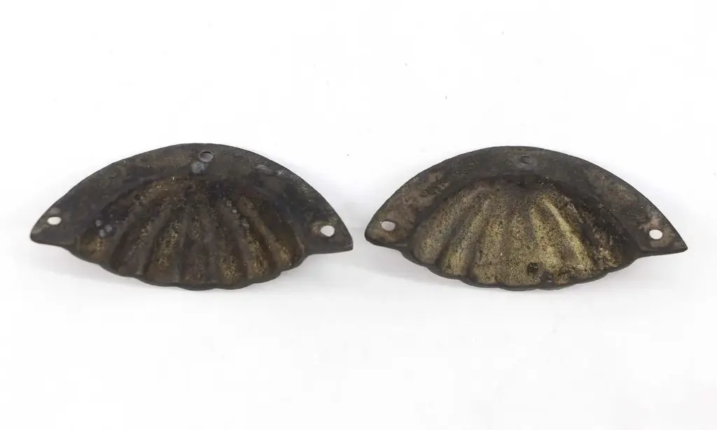 Pair Of Vintage 3 In. Scallop Cast Iron Bin Drawer Pulls