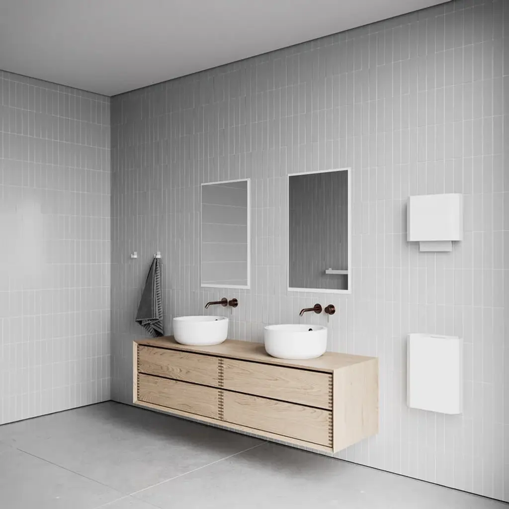 Nichba's paper bin offers a minimalist and space-efficient solution for disposing of paper waste, making it especially suitable for bathroom use. This sleek, wall-mounted paper bin is constructed from powder-coated steel, which not only ensures its durability but also makes it easy to clean. Designed by Nichlas B. Andersen and made in Denmark, the Nichba bin is especially well-suited for smaller public spaces like cafes, hotels and offices.