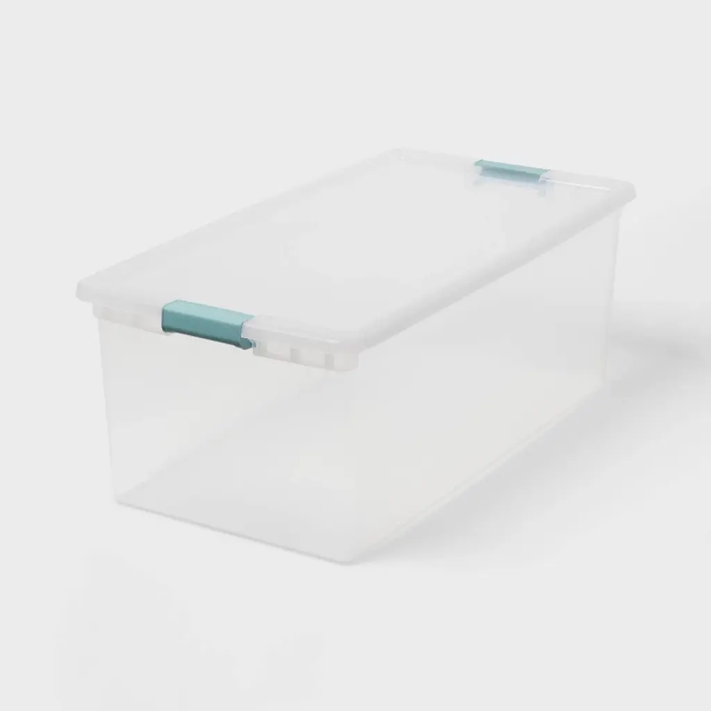 ORGANIZE ANY AREA OF YOUR HOME Organize Everyday Essentials This practical clear storage plastic container is designed with organization in mind. The 7 quart storage box design allows you to store a variety of basic household items and personal belongings in just a snap, keeping your living space and rooms neat and tidy. The clear view design allows content to be easily identified, while the colored lid acts as an identifiable label to easily pinpoint the container’s inside objects. YBM Home storage box is perfect for sorting and storing shoes, sandals, clothing, accessories, towels, craft supplies, and other small items. High Quality Plastic Box This clear storage box is designed with sturdy plastic that will not break or get loose overtime. It withstands daily wear n’ tear and secure your items safely with the protective cover. The container is stackable to open storage space and maximize organization.