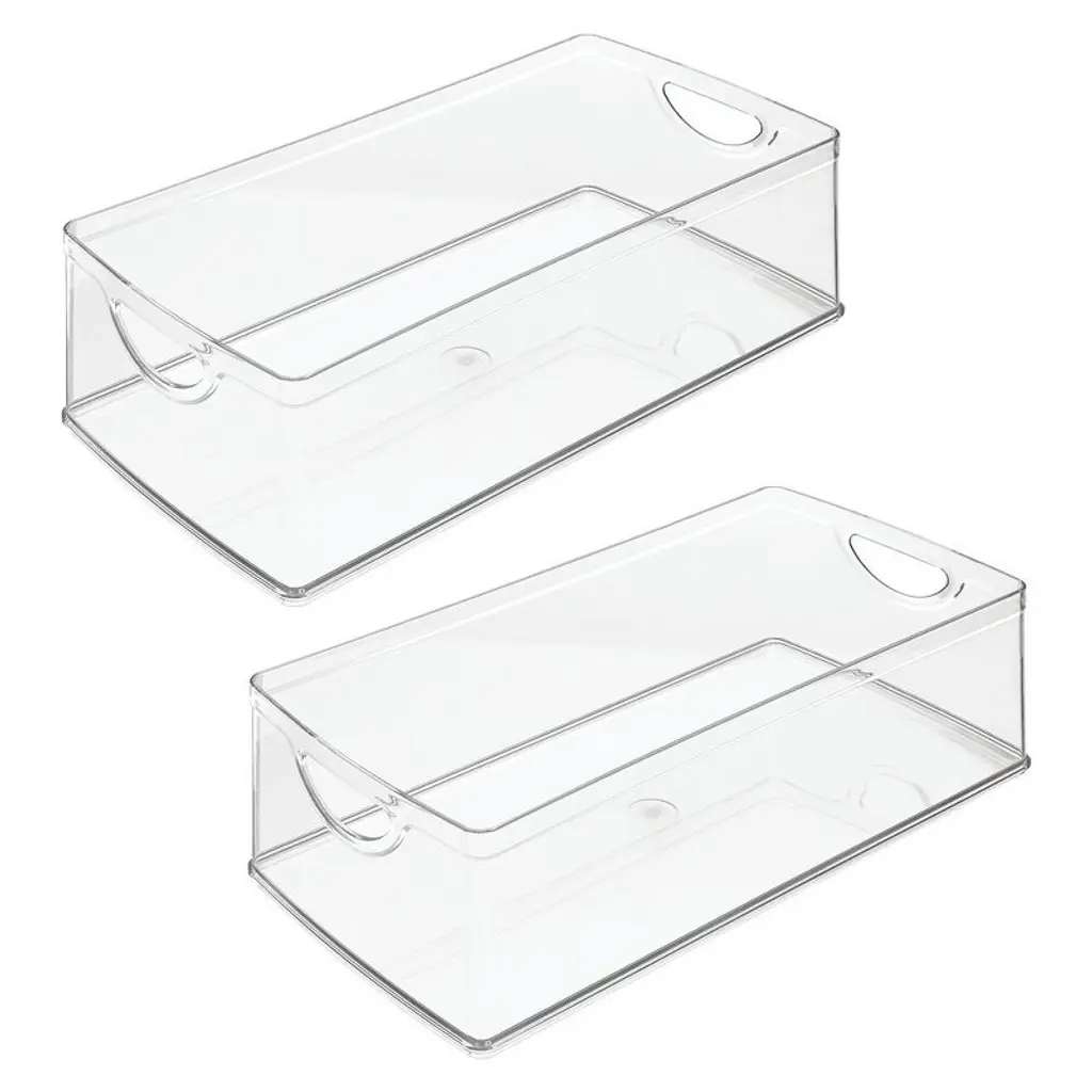 Stop stressing and start streamlining your kitchen with the versatile iDesign Cabinet Bin. This no-fail organizer bins are ideal for corralling tall bottles, snacks, boxed foods, or any other items you want to avoid losing to the back of the pantry. The spacious, open-top design grants immediate reach-in access to everyday items, keeping your belongings easily accessible at all times. Its transparent construction offers unobstructed views for instant visibility, and two comfortable carry handles facilitate easy transport to make organizing a breeze.