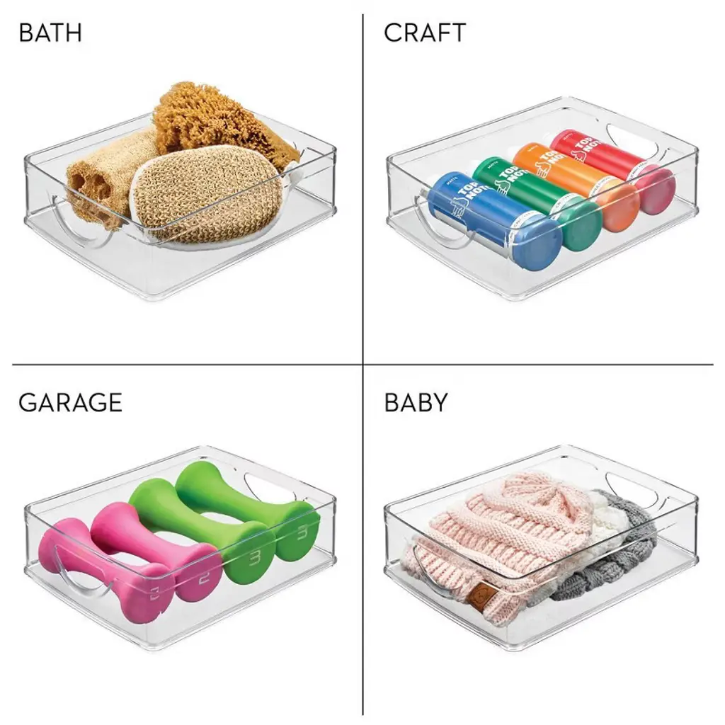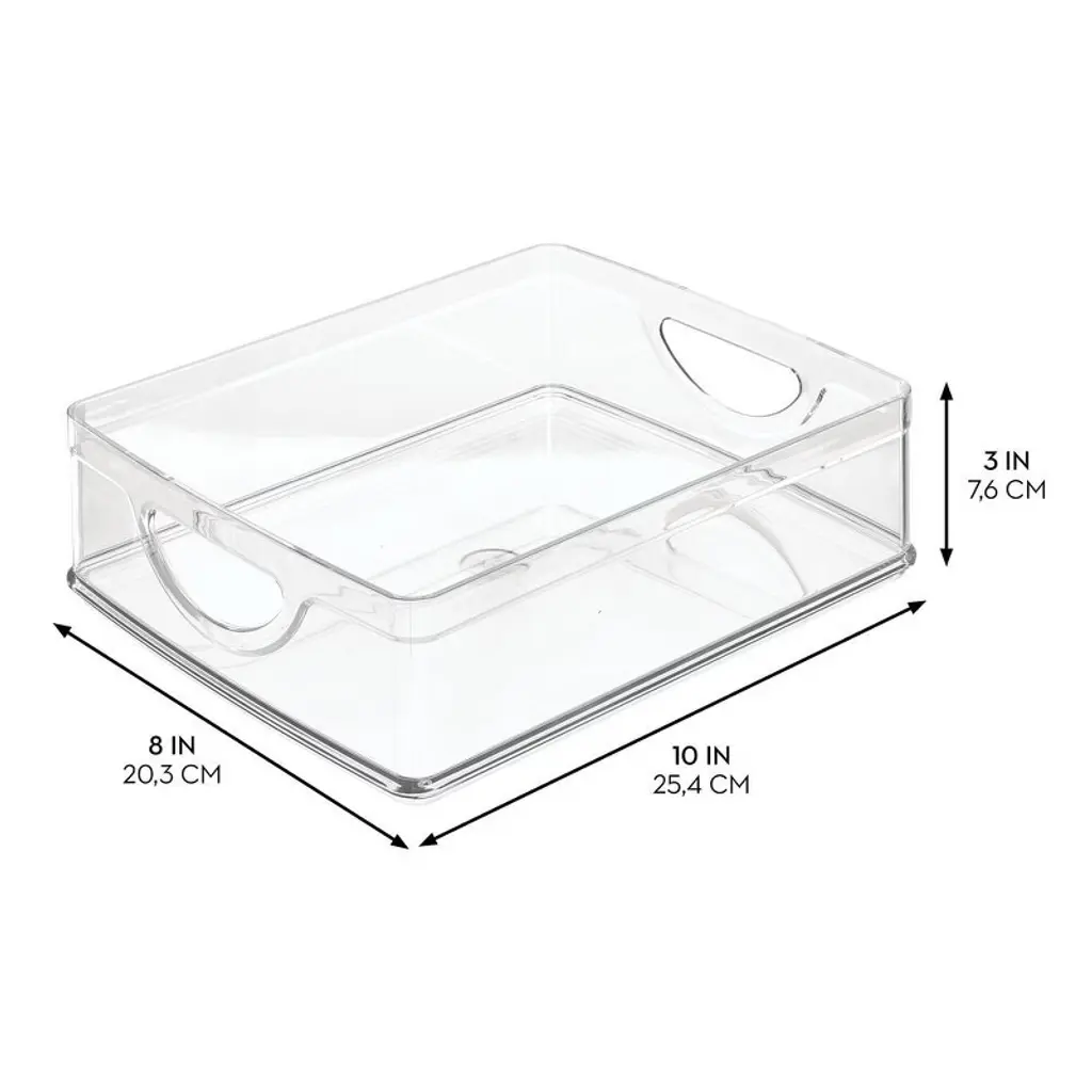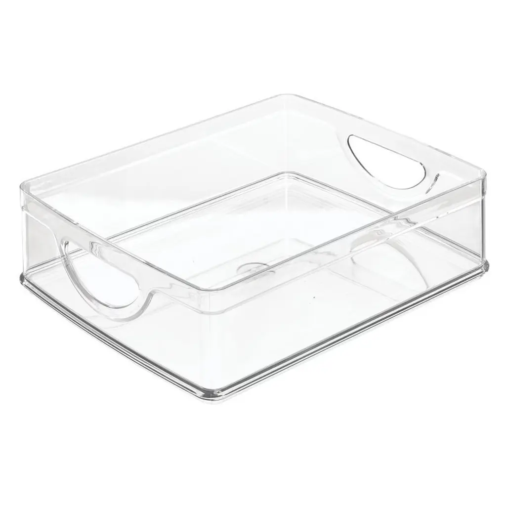 Keep everything tidy and simplify your everyday with the iDesign Plastic Cabinet Bin. The spacious, open-top design grants immediate reach-in access to everyday essentials, including pantry staples, baking supplies, kitchen linens, and more. Raised feet at the base will enable bins to stack neatly while conserving space, and two easy-grip carry handles facilitate easy transport from around the kitchen or throughout the home.