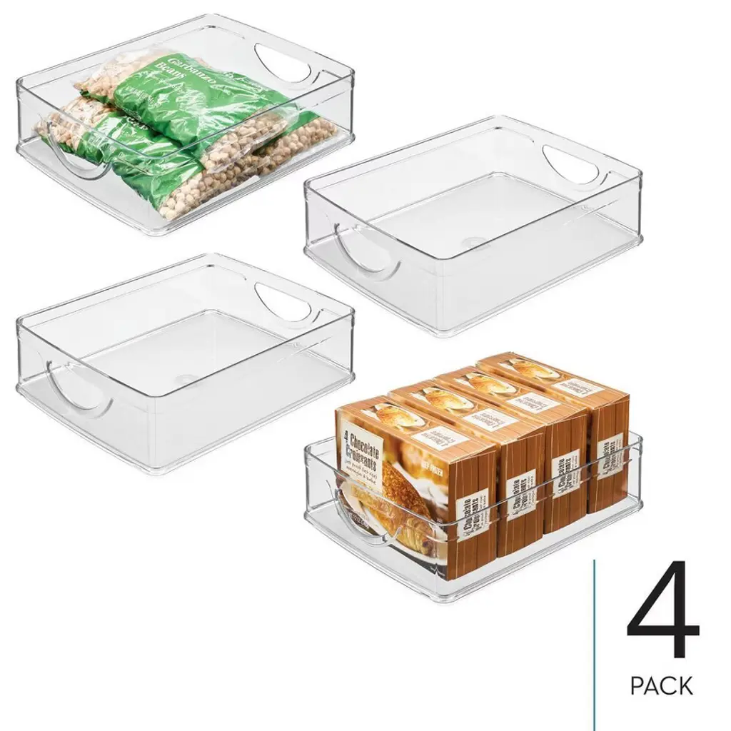 Plastic Stackable Pantry Bin With Handles, Set Of 4, Clear, Made In Usa