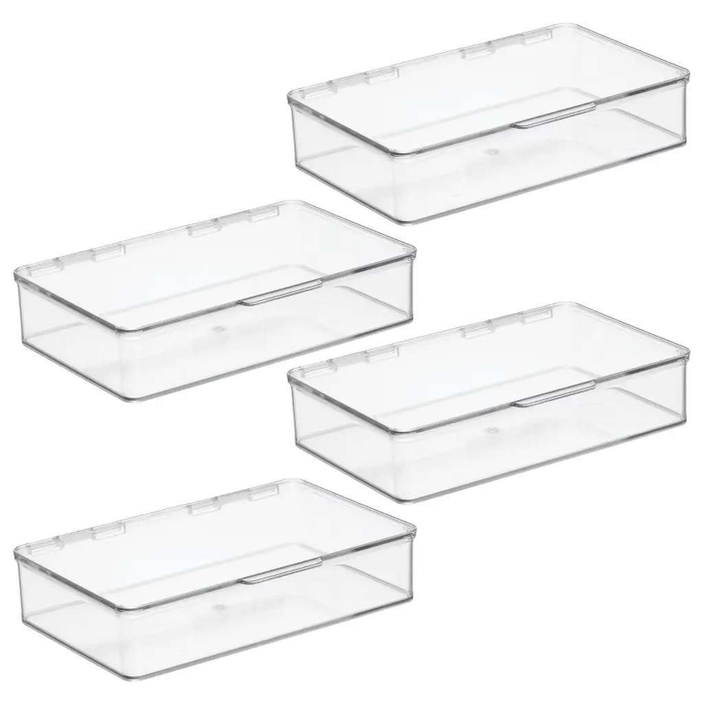 Plastic Storage Clear Bins W/ Lid, Stackable Pantry Box Bin Containers - 4 Piece