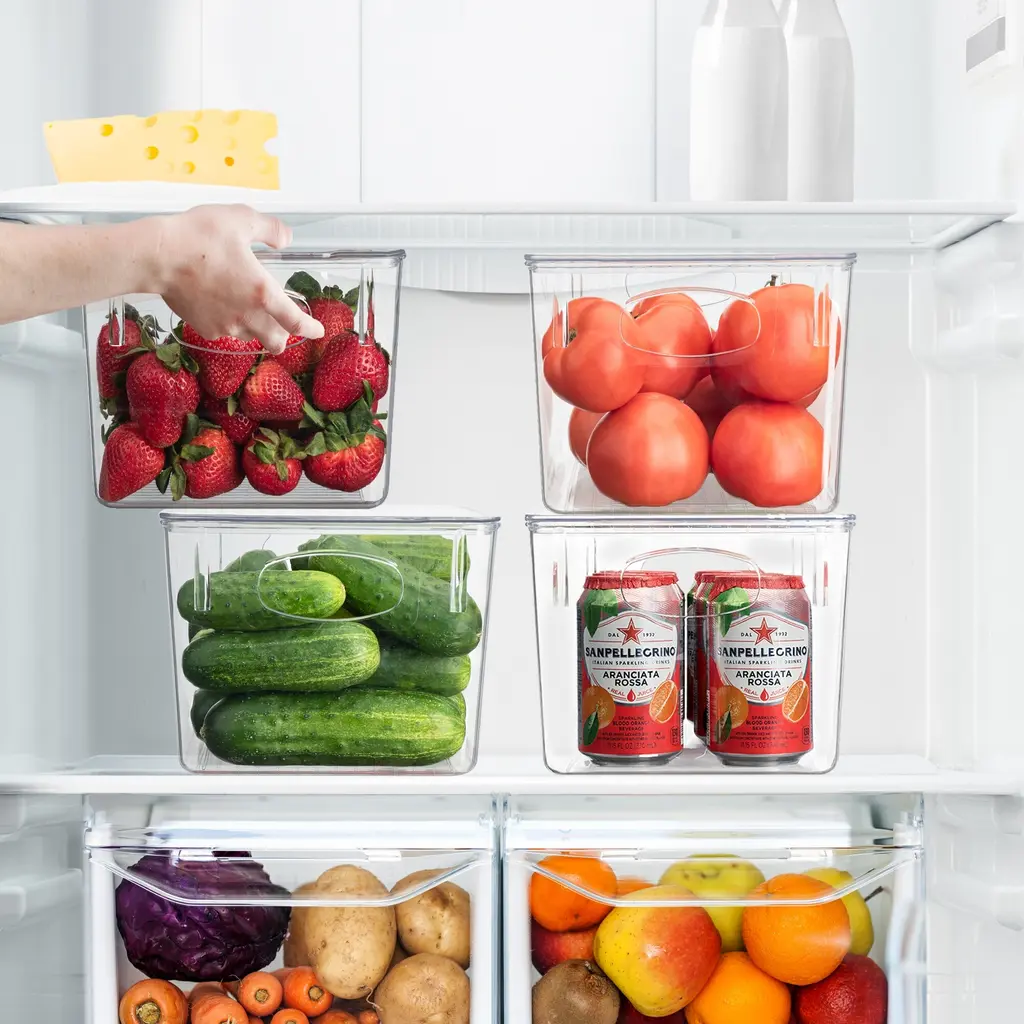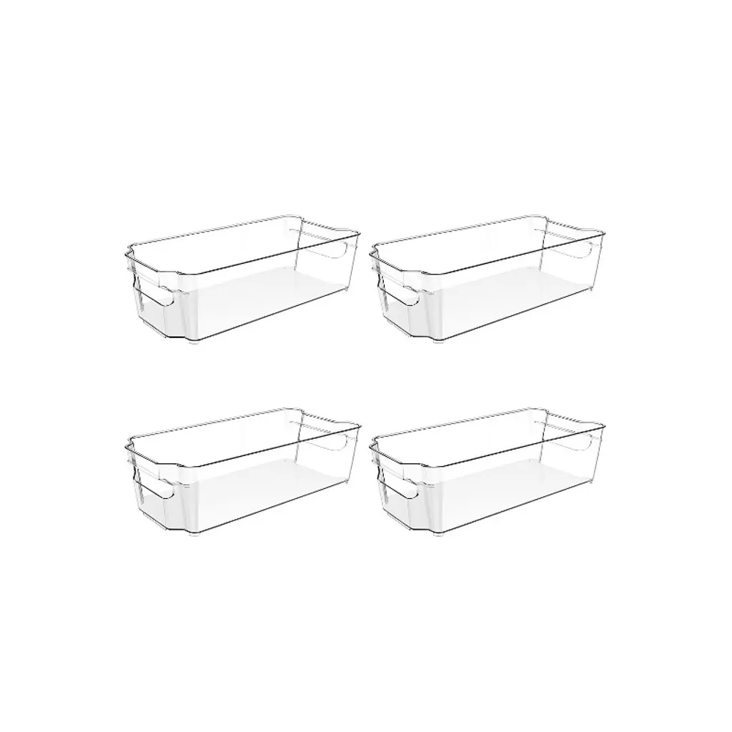 No more searching for that much needed ketchup bottle or juice box! The Sorbus Container Bin Set keeps your kitchen organized with a clear view. A translucent design allows you to quickly see what's stored inside and group contents by type. Store anything from fruits and veggies in the fridge to packaged goods and supplies in the pantry. Built-in handles make it easy to pull off shelves and carry around the home. When paired with included lids, bins stack to maximize space. For versatility, use them without lids as catchalls or convenient drawer organizers. Now go ahead and enjoy your neatly organized space.Multi-purpose storage for any space.Whether you’re stocking the pantry, making a grocery list, or tidying up household clutter, these container bins organize any room! In the kitchen, use them to keep food items ready for meal prep or so kids can easily grab their favorite juice boxes and snacks. For multi-purpose use, hold bathroom toiletries and cleaning products or to color-code that pile of crafts the way you've always wanted. The sleek clear look blends with most home décor for function and style.Durable clear design.StackableStacks to maximize vertical space.PortableCut-out handles for easy transport.Lid ClosureKeeps items contained and easy to remove.